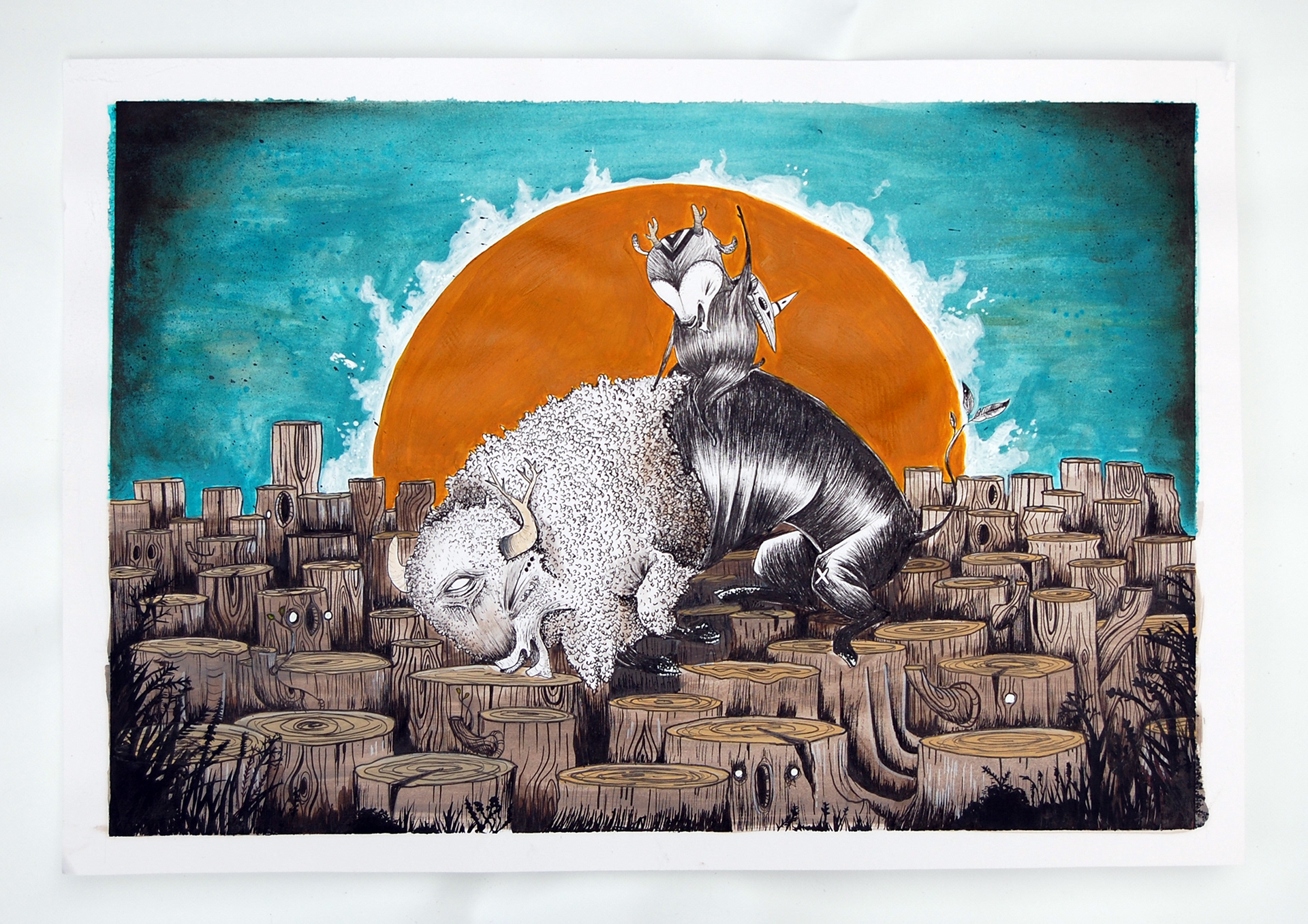An illustration I did because I had this need to draw a bison.