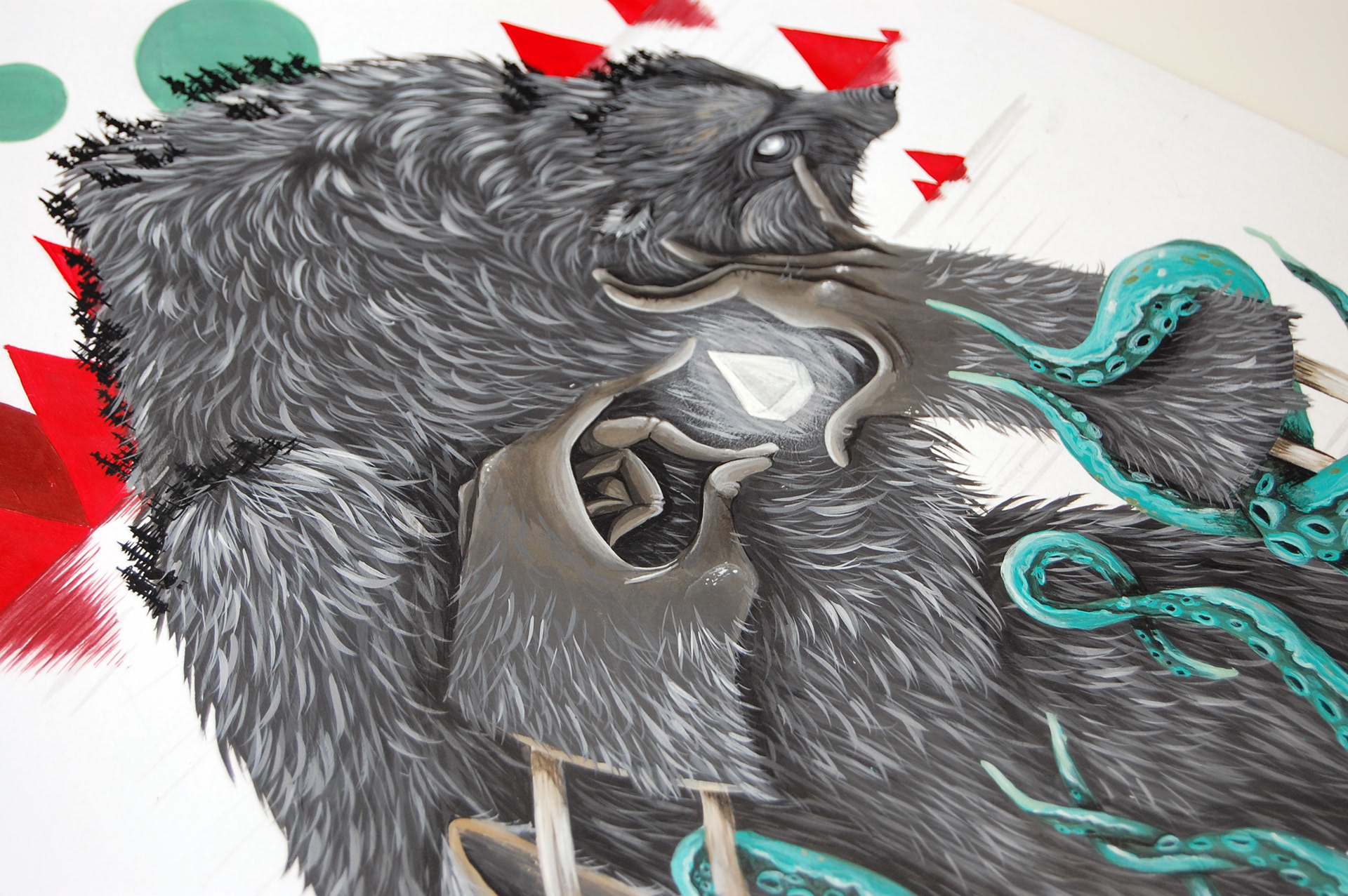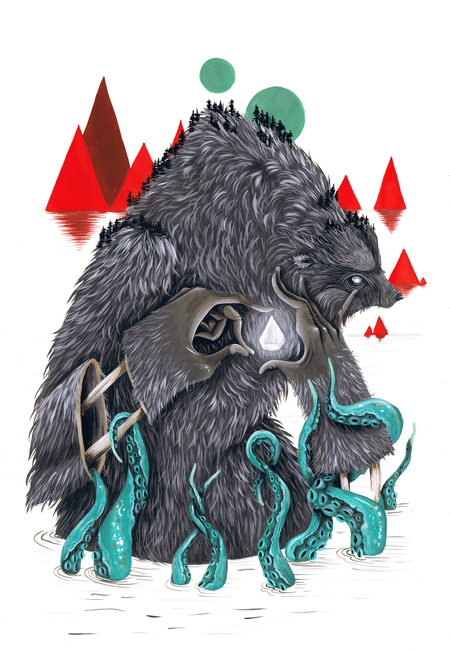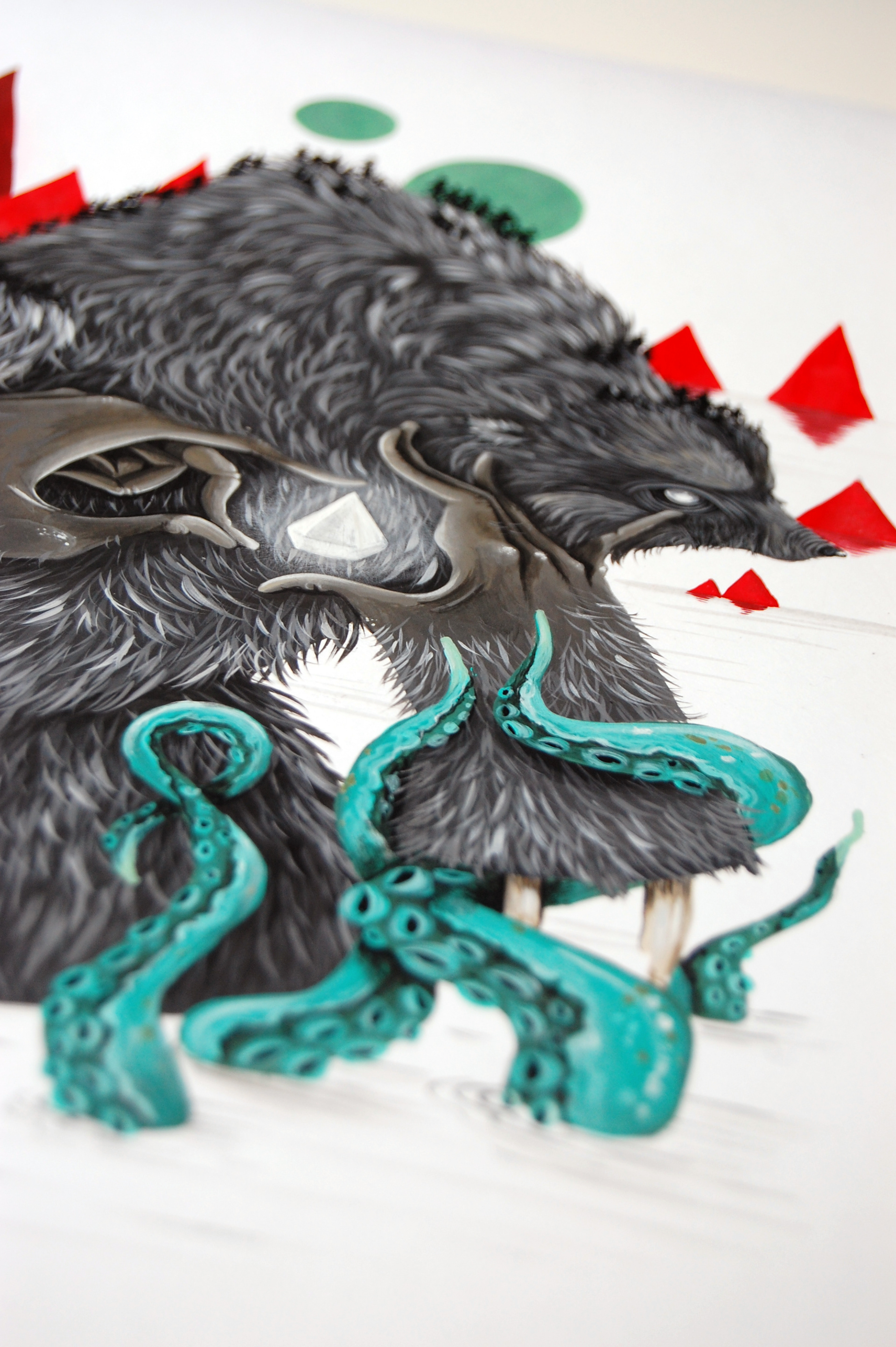 EIGHT of DIAMONDS // 2014 // CREATURE SERIES for ARTIST DECK OF CARDS 8 Tentacles, bright diamond