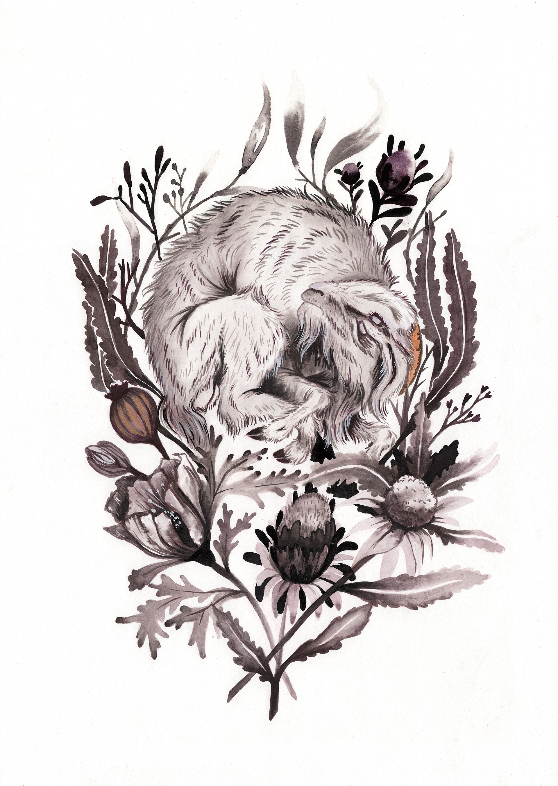 FLORA FAUNA SQUISH // 2018 Tangled flowering fallen hare Twisted foliage goat