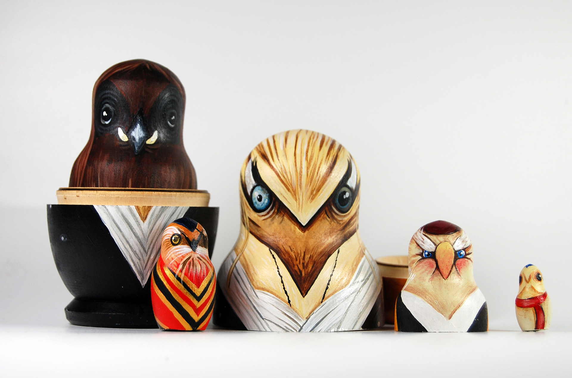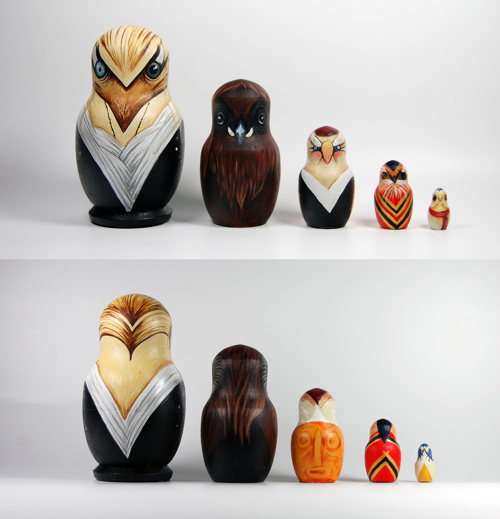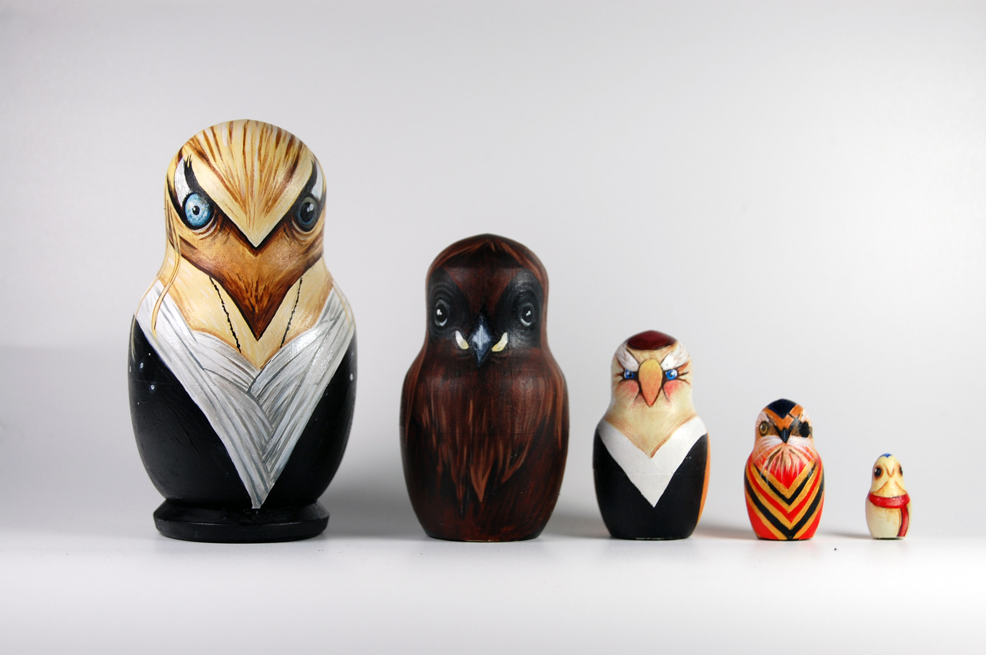 Commissioned set of Russian Owls with a Labyrinth theme.
