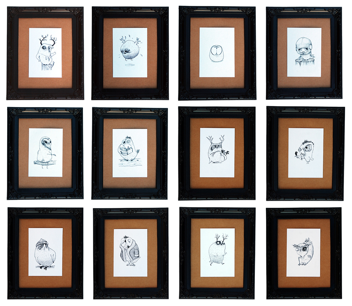 ... A small personal project to fill my weekend. A set of 13 featherless nakky owls for your enjoyment.