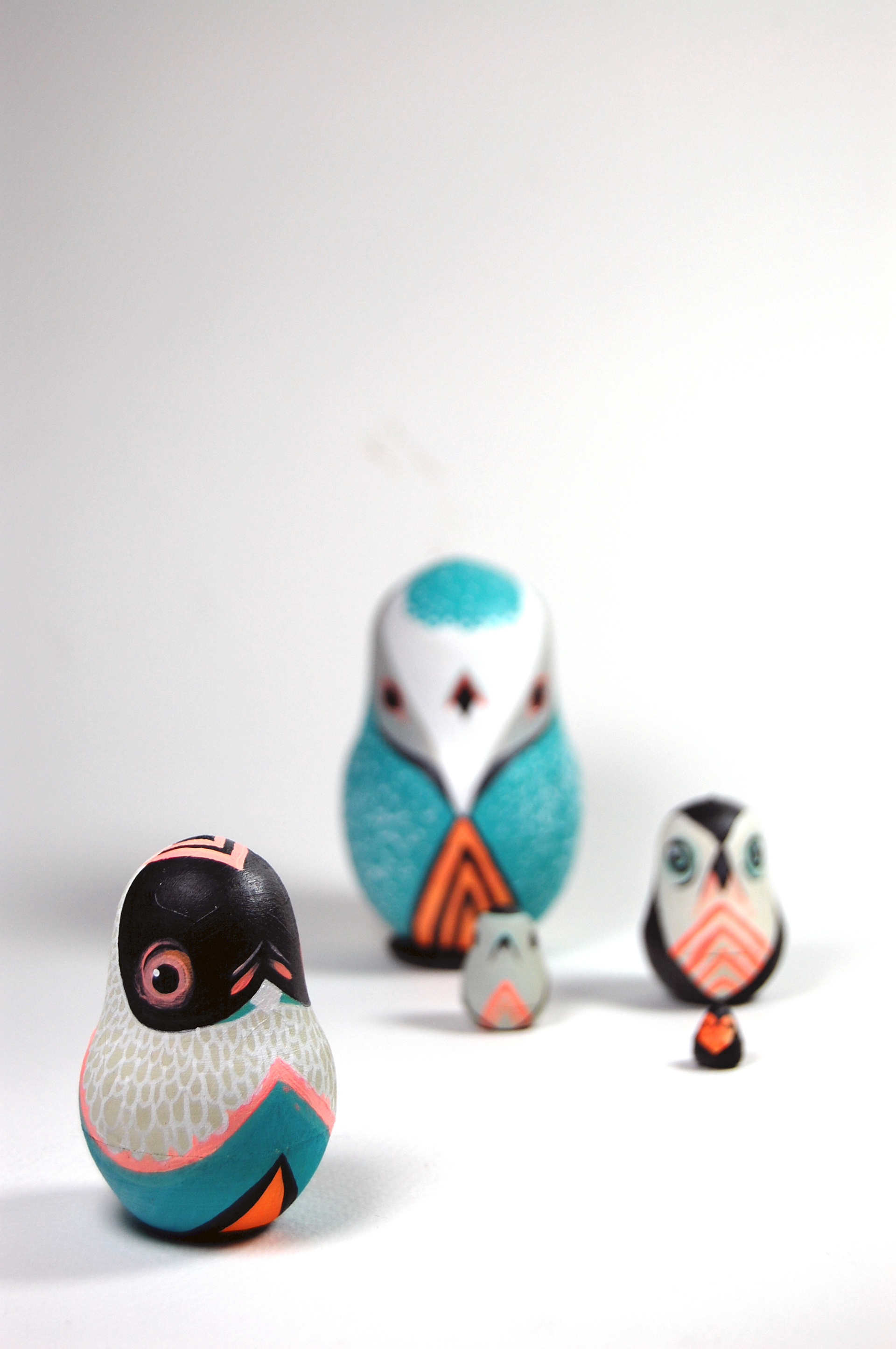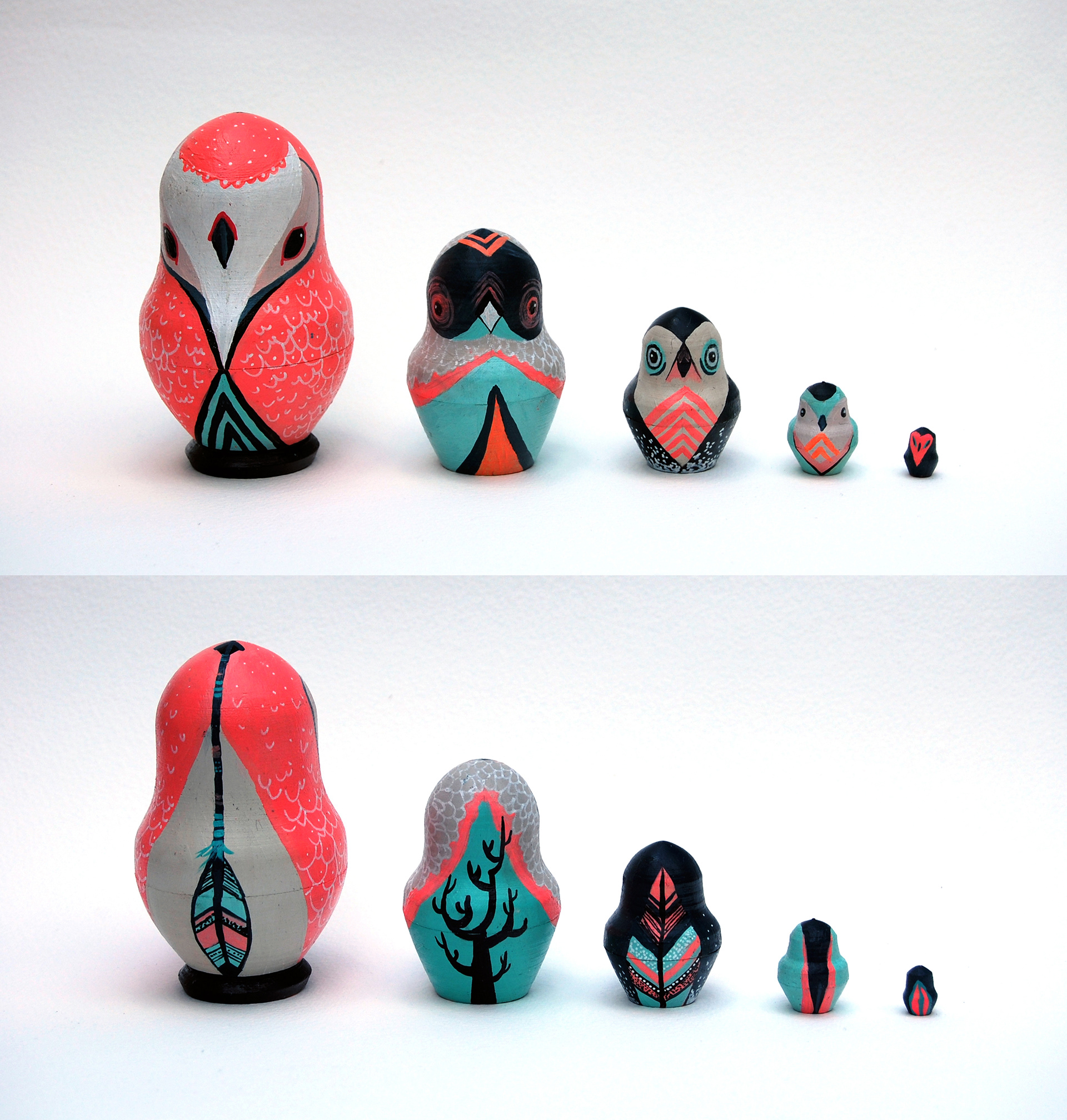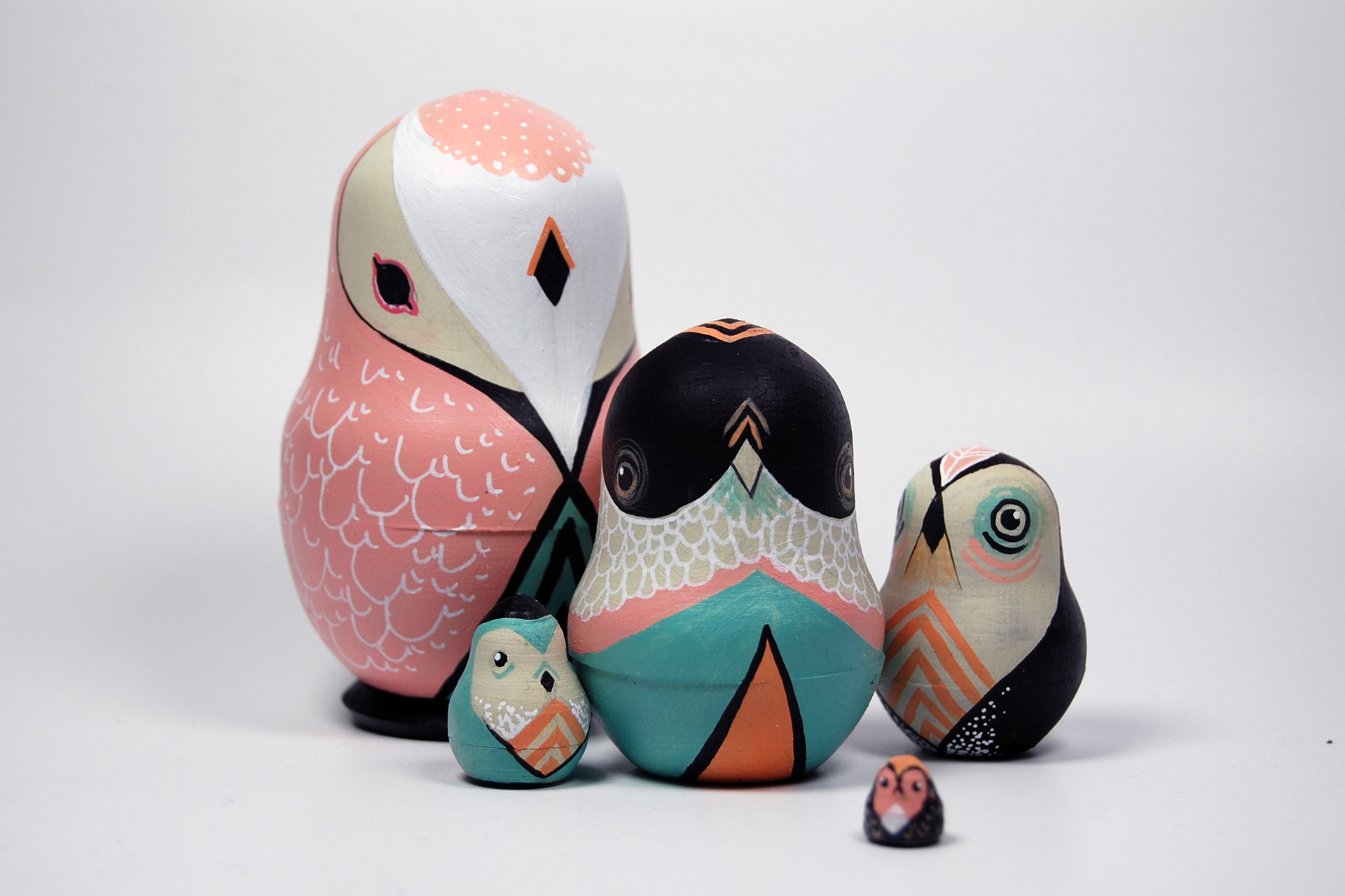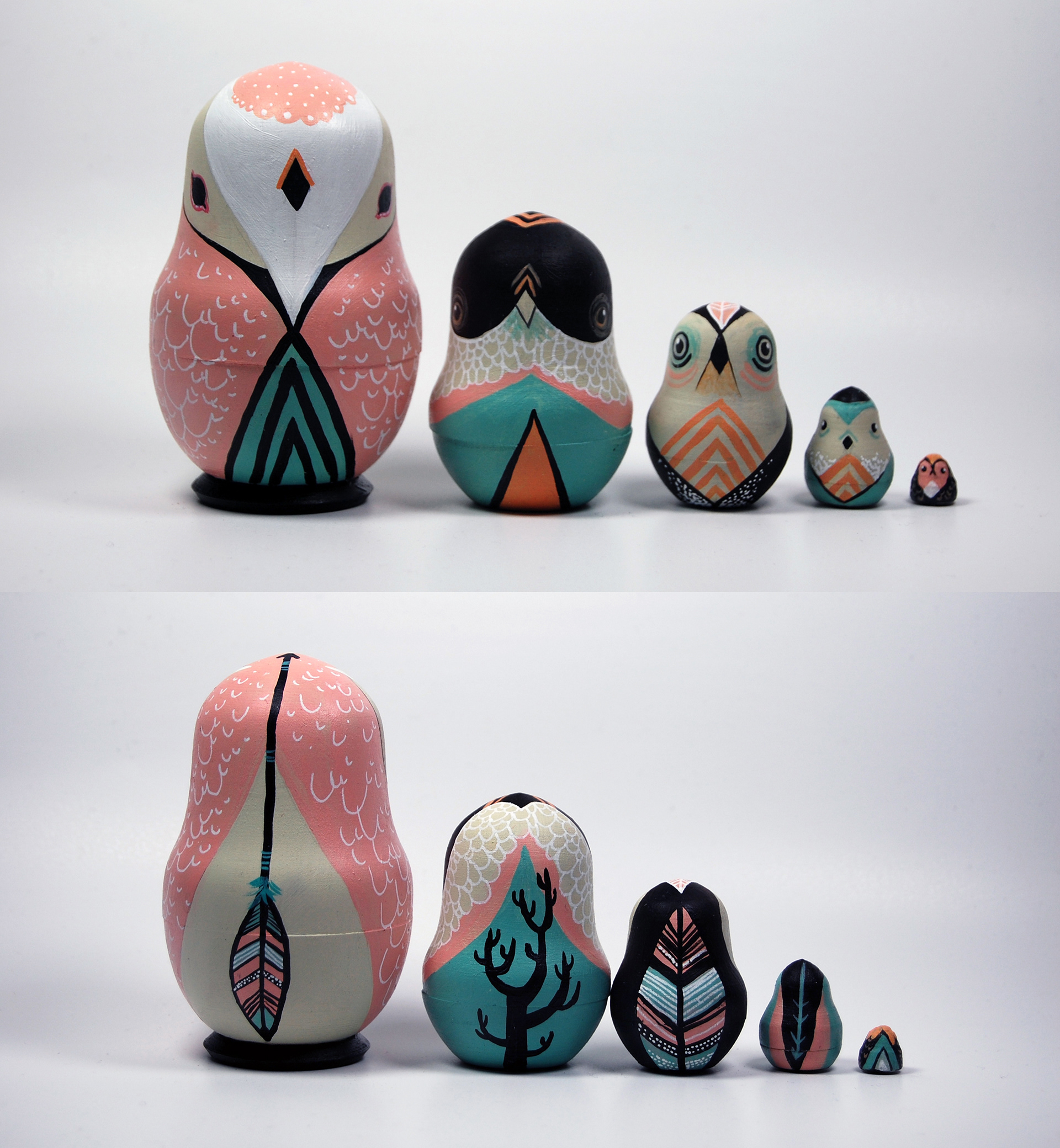 4 Commissioned Russian Owl sets called Pink Sand and Turquoise Sand.