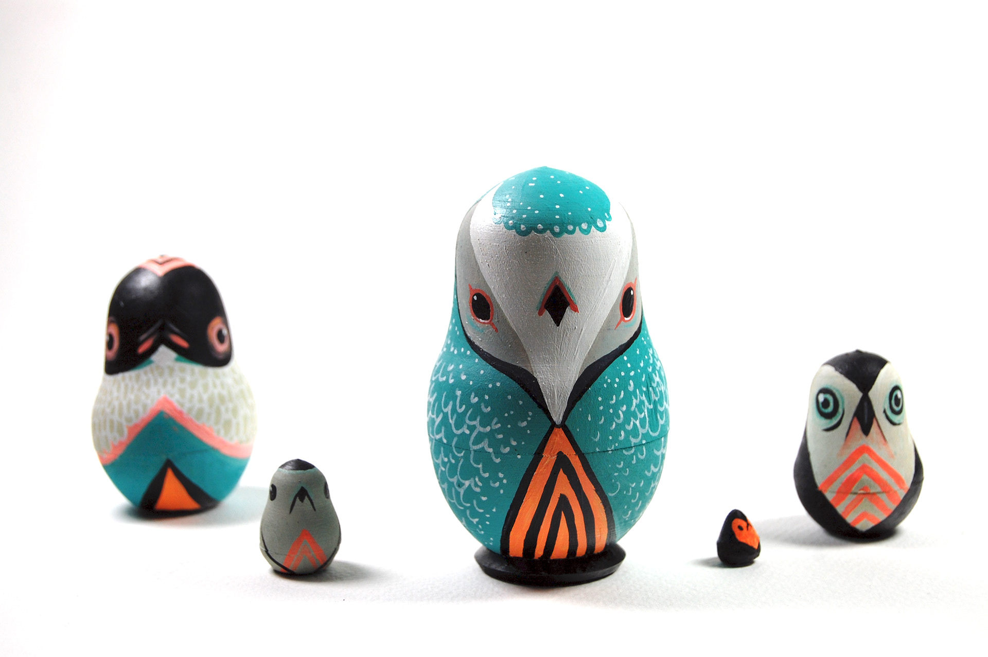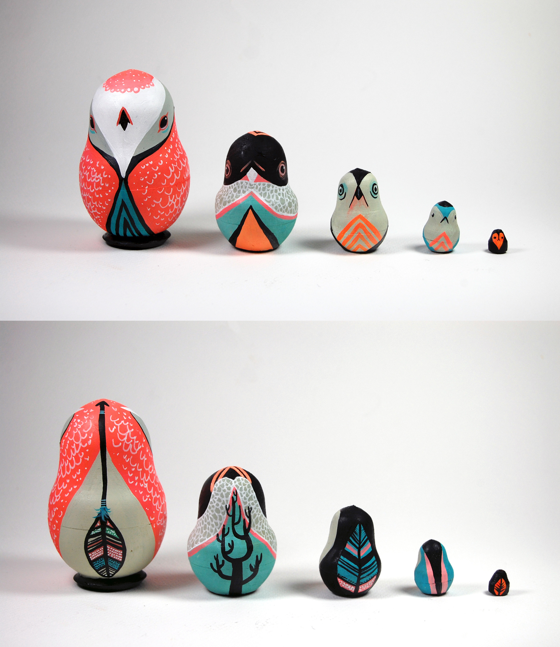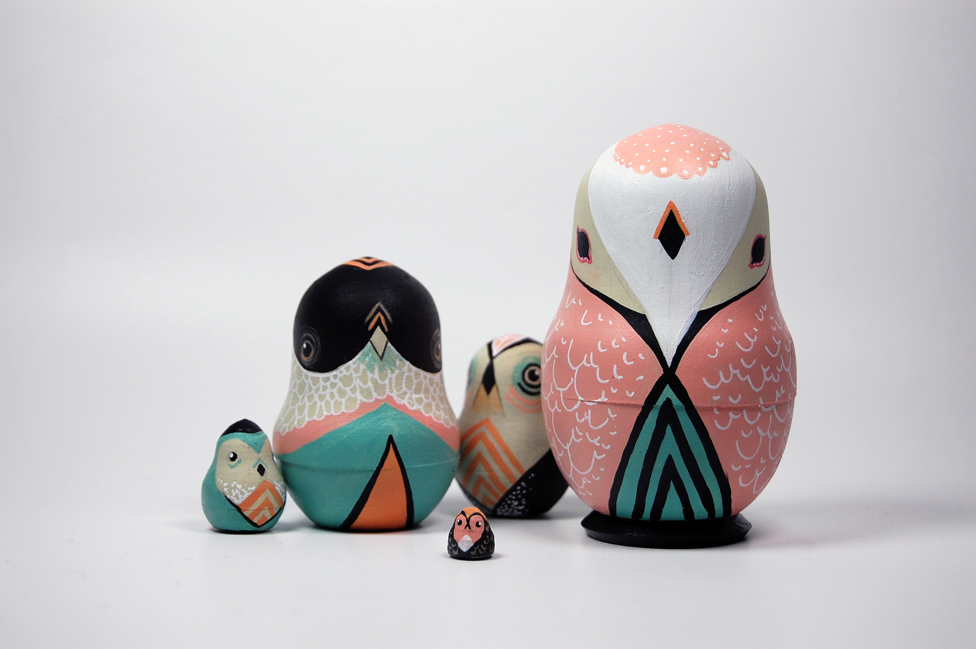 4 Commissioned Russian Owl sets called Pink Sand and Turquoise Sand.