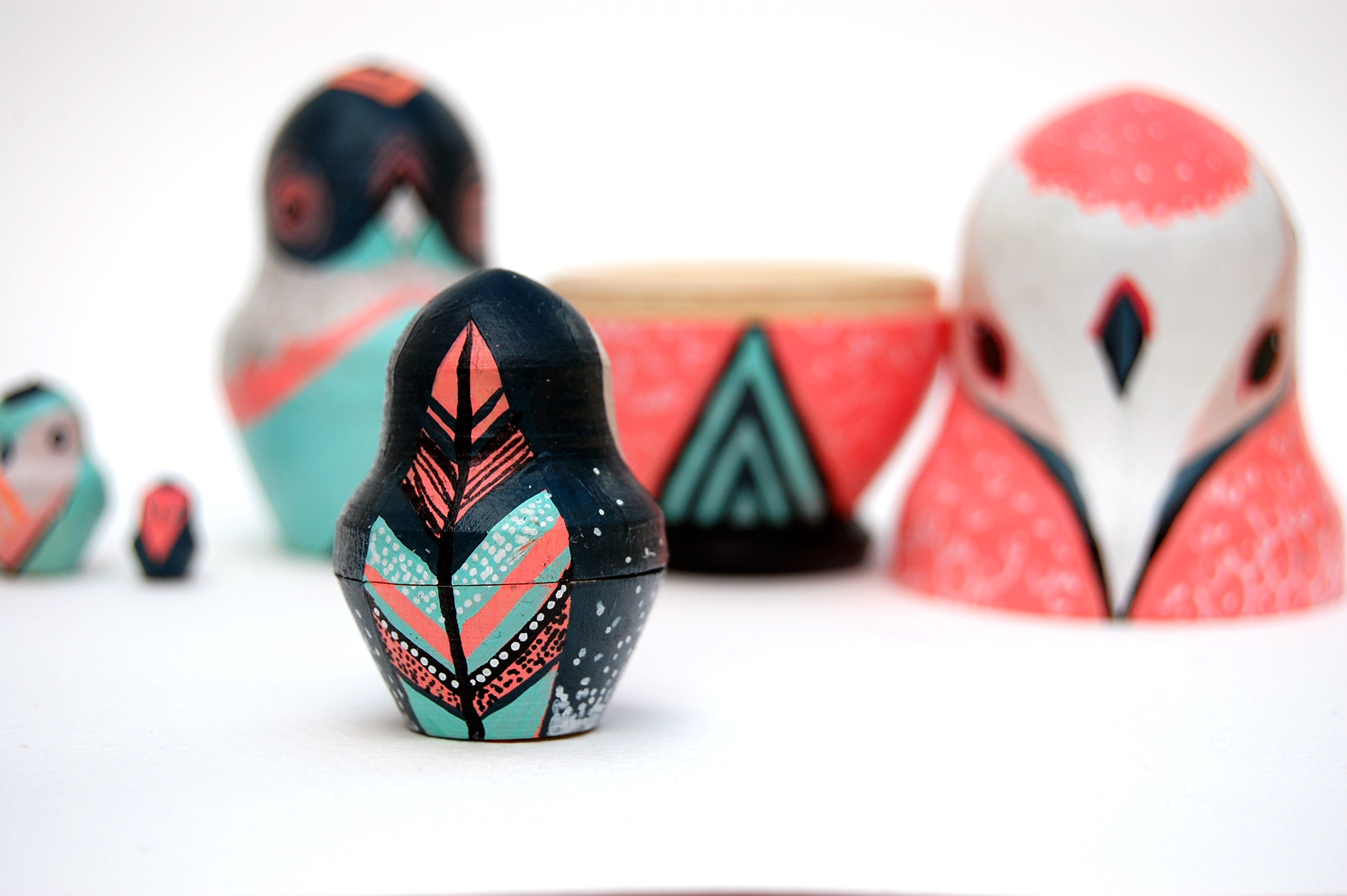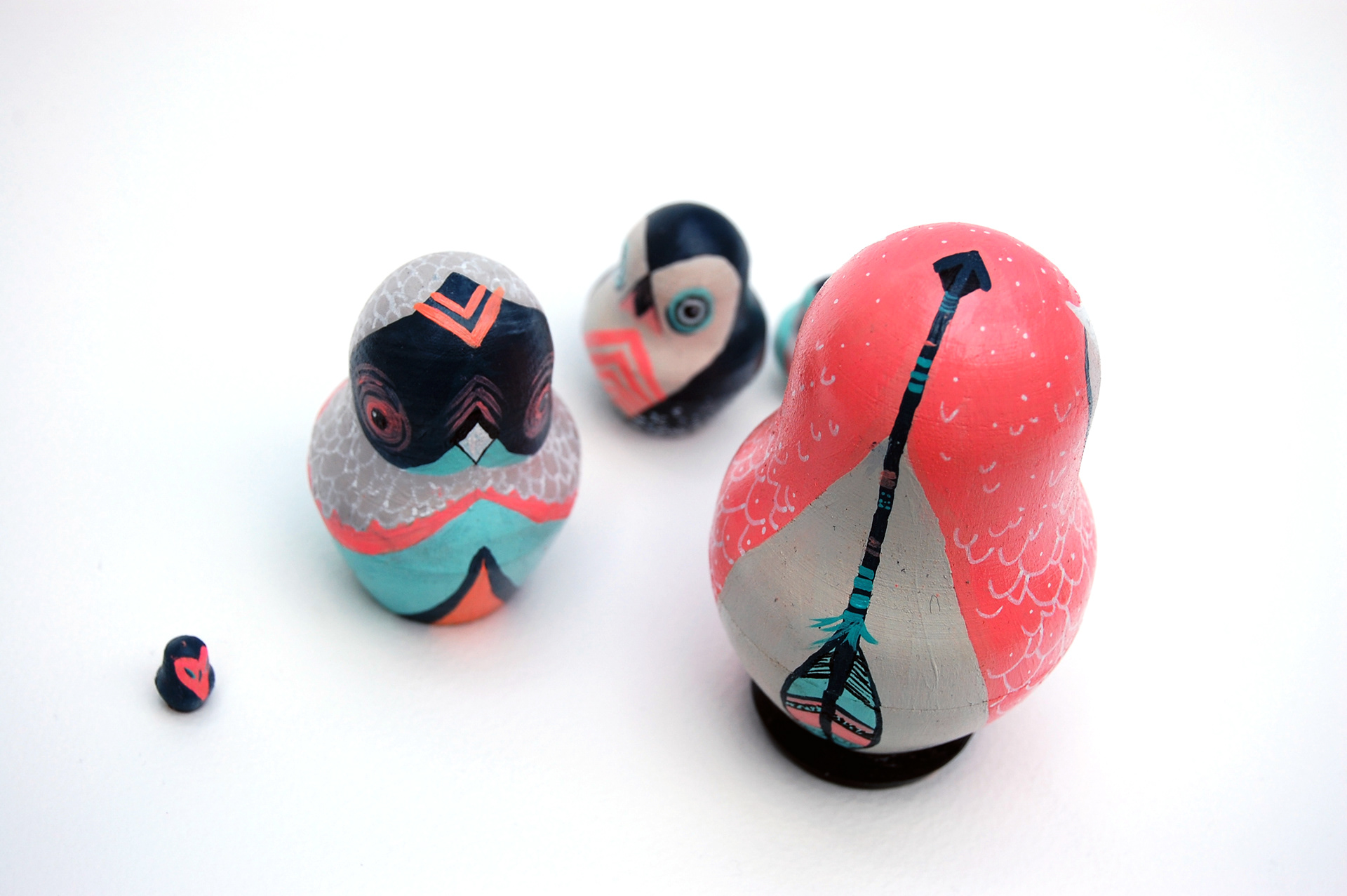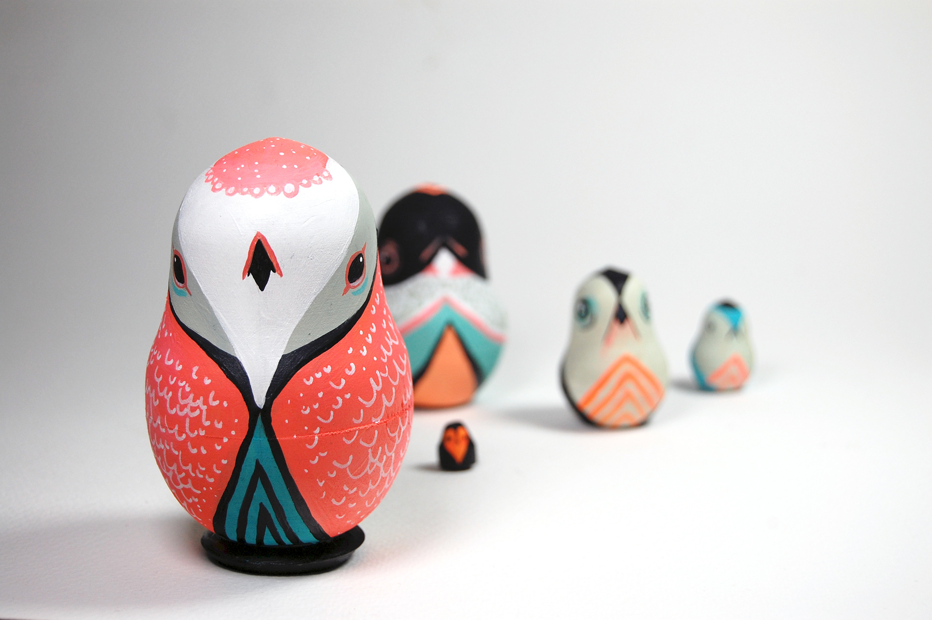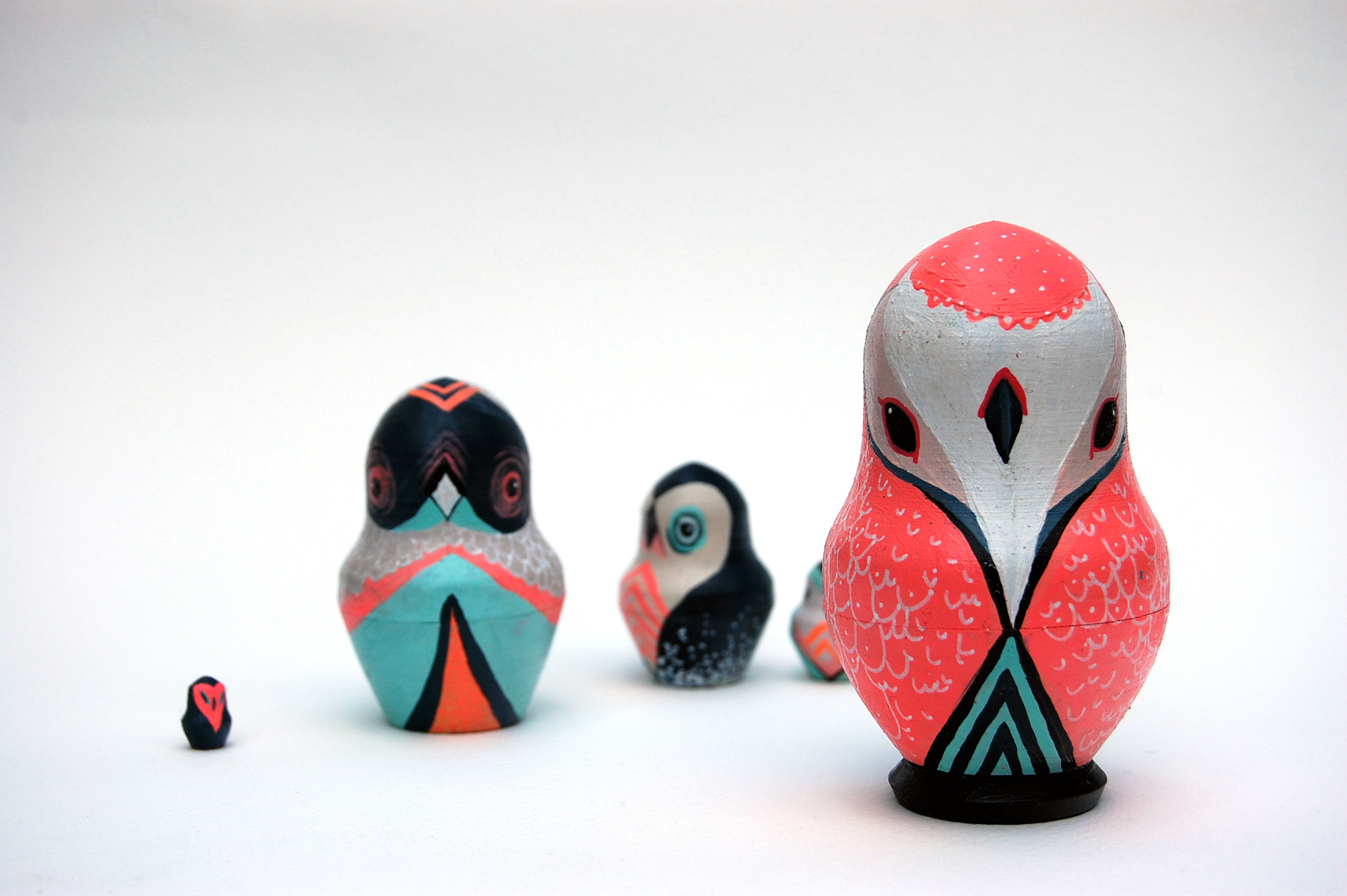 4 Commissioned Russian Owl sets called Pink Sand and Turquoise Sand.