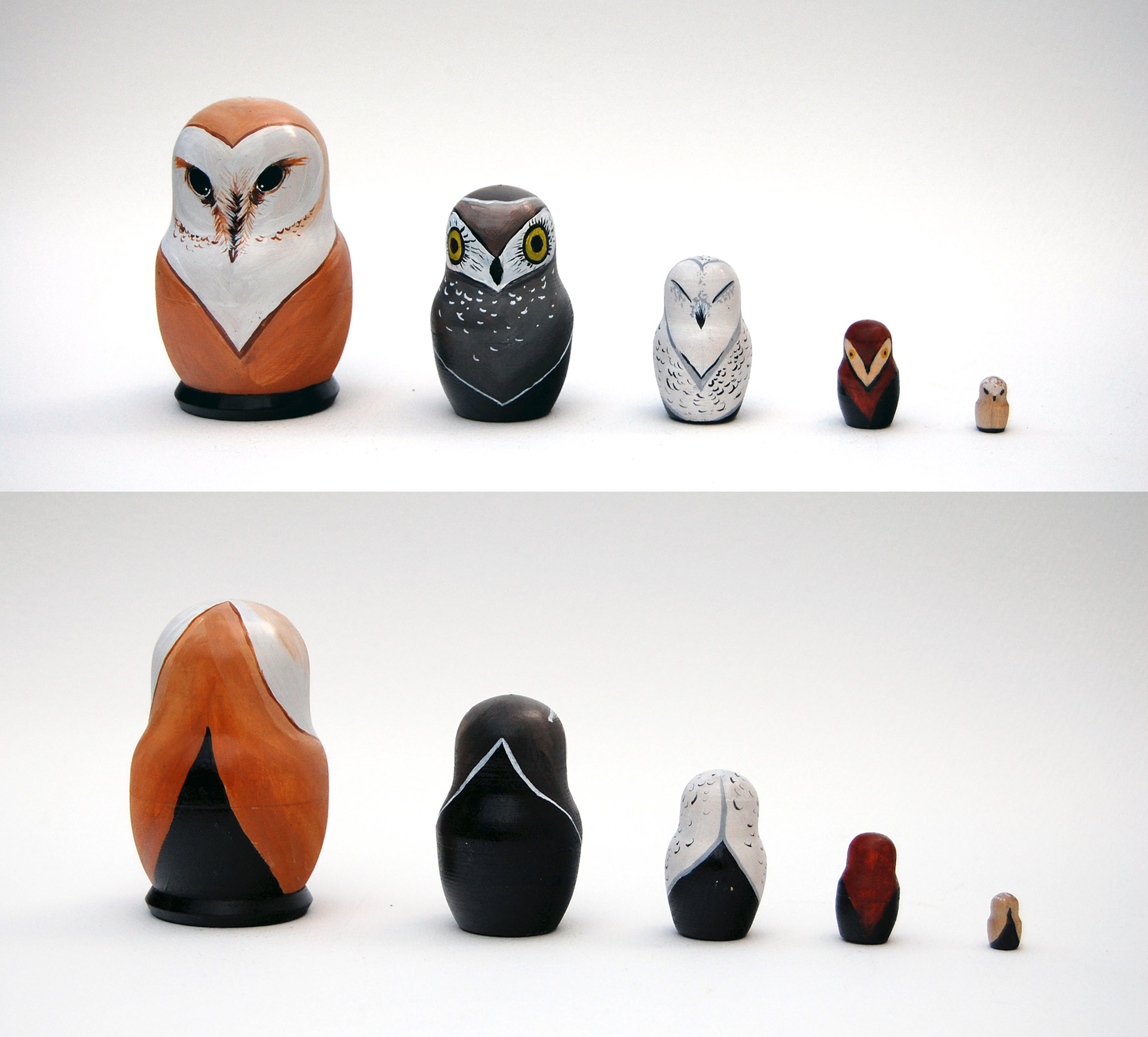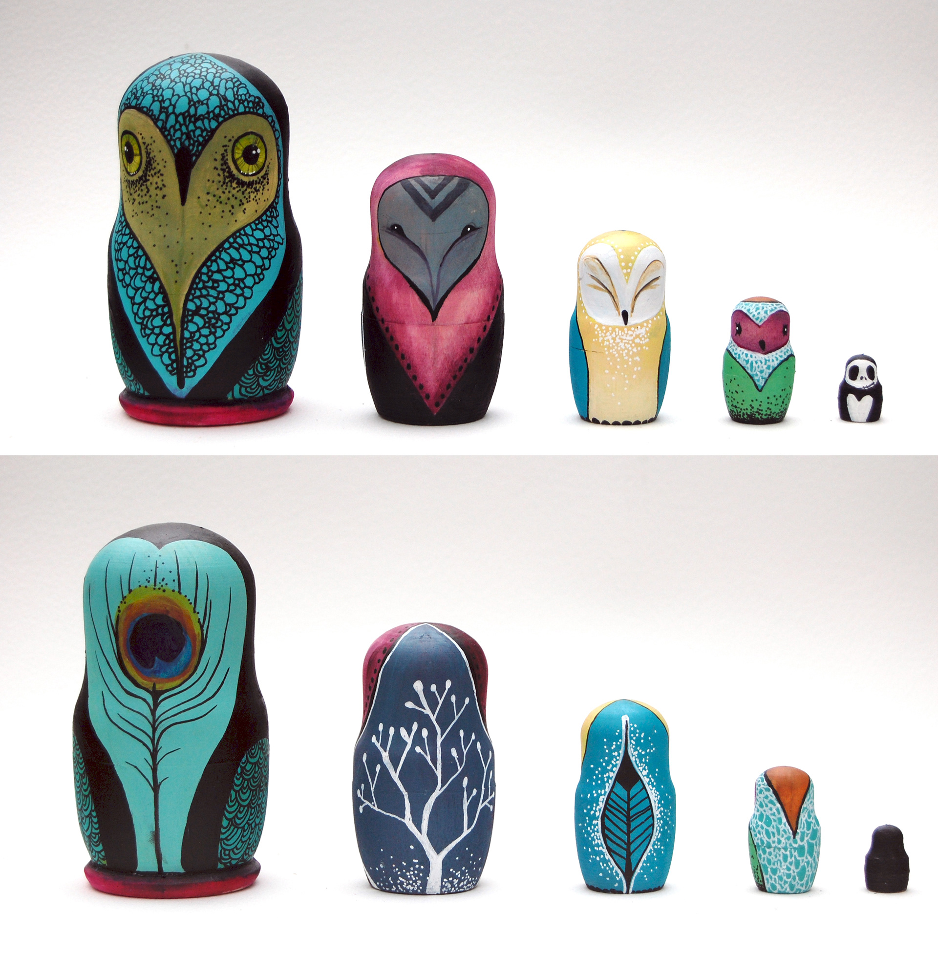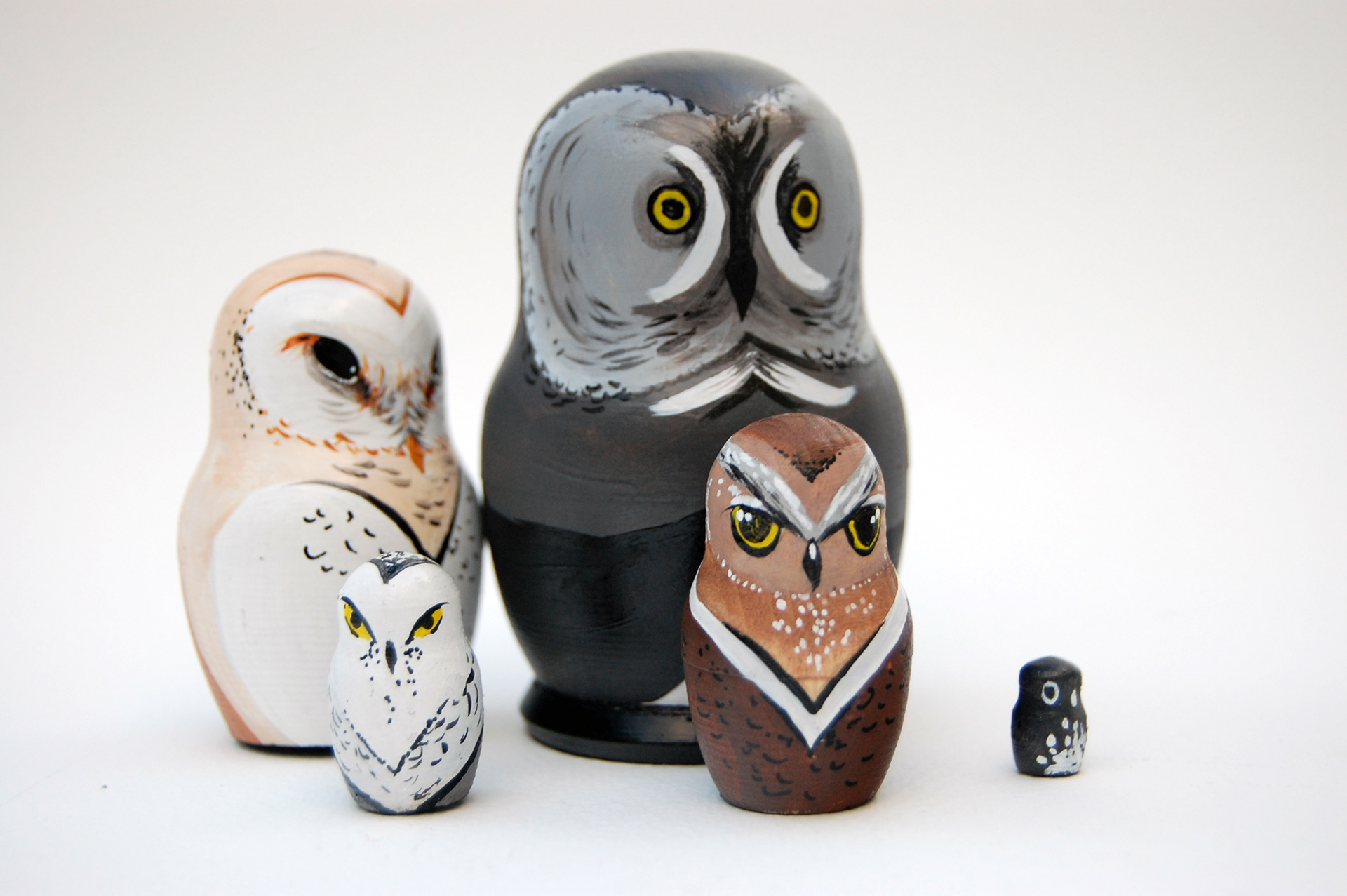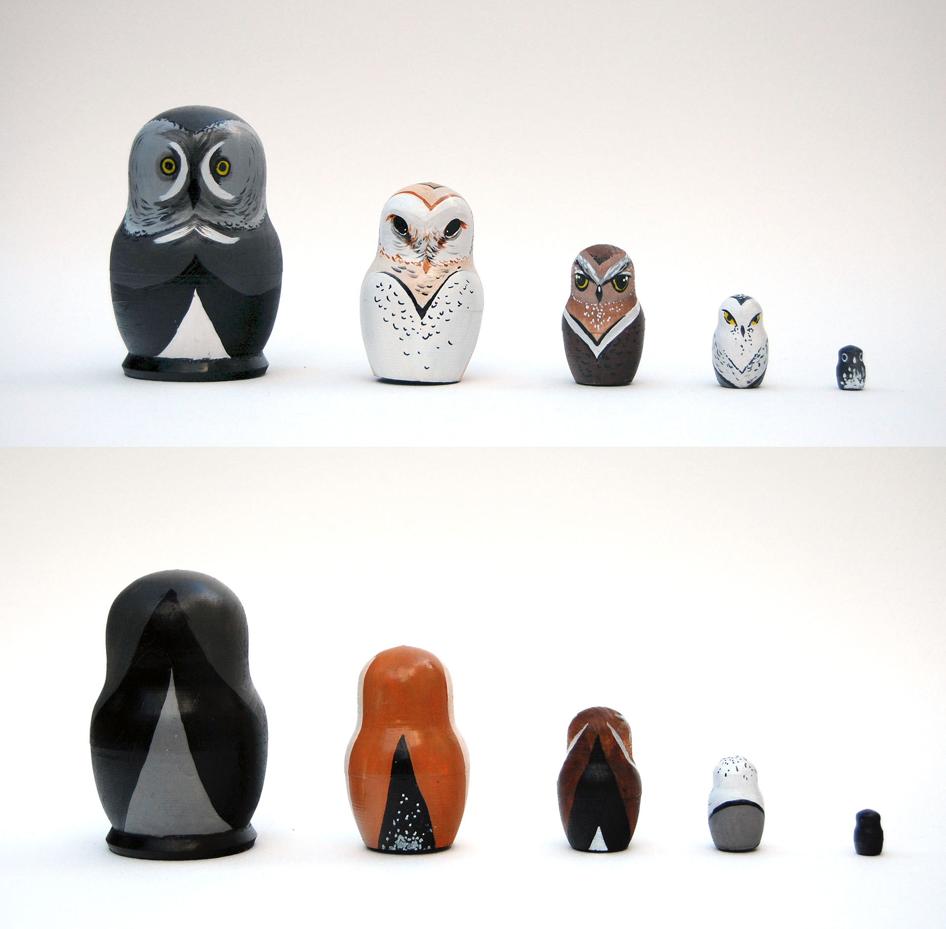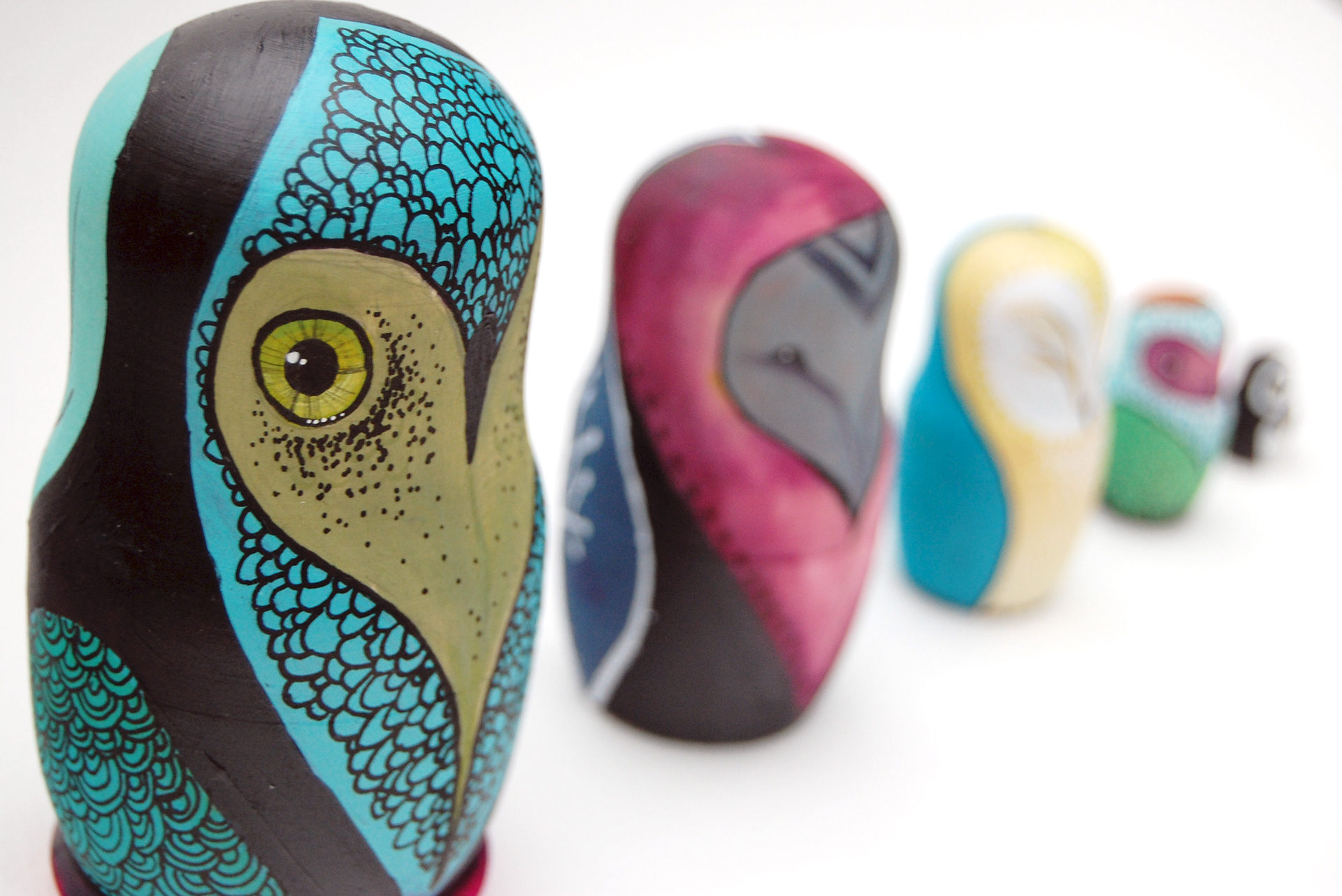 Commissioned Russian Owl Sets. All personalised with specific details (colours, features, or theme).