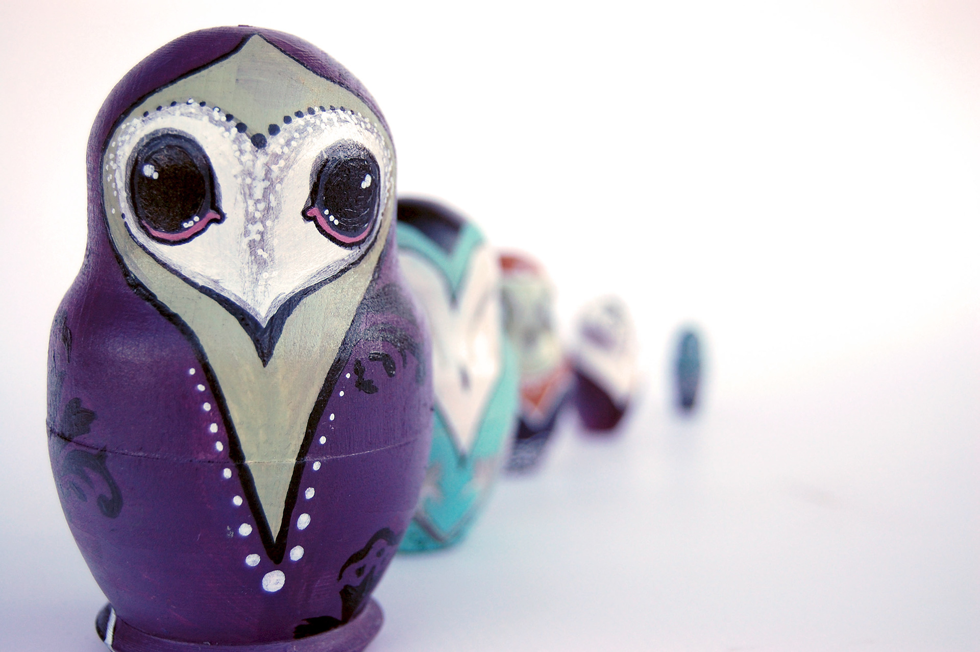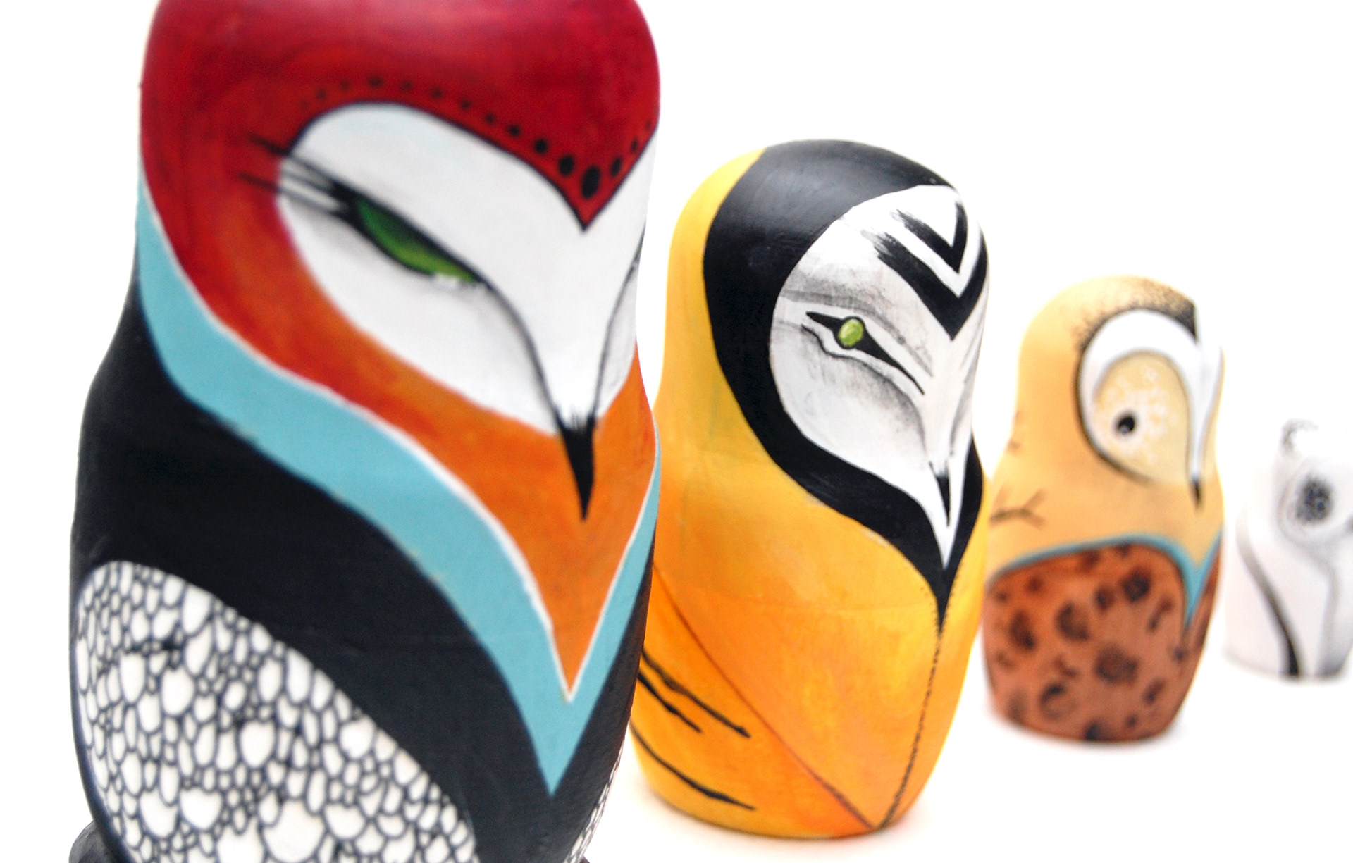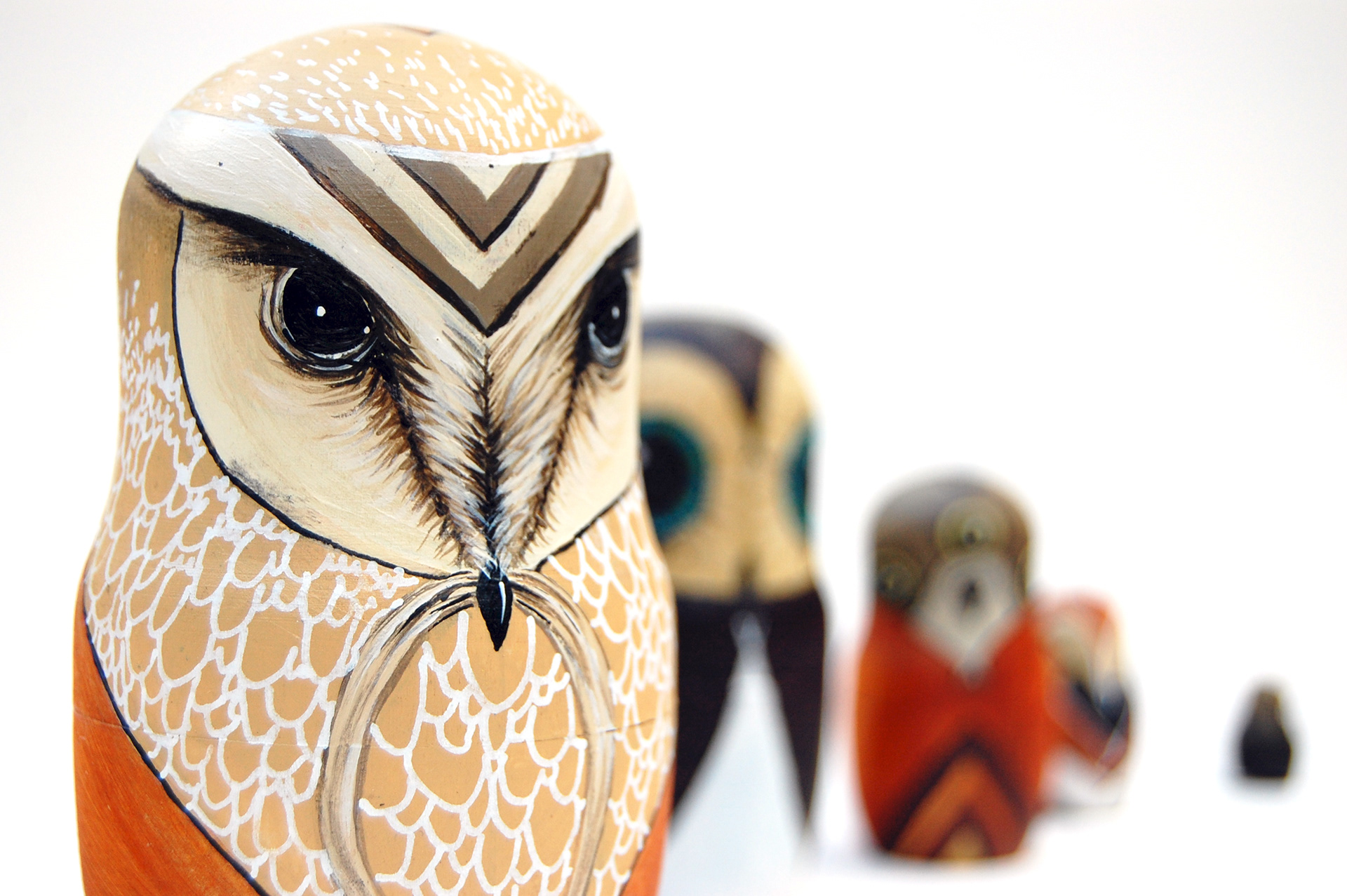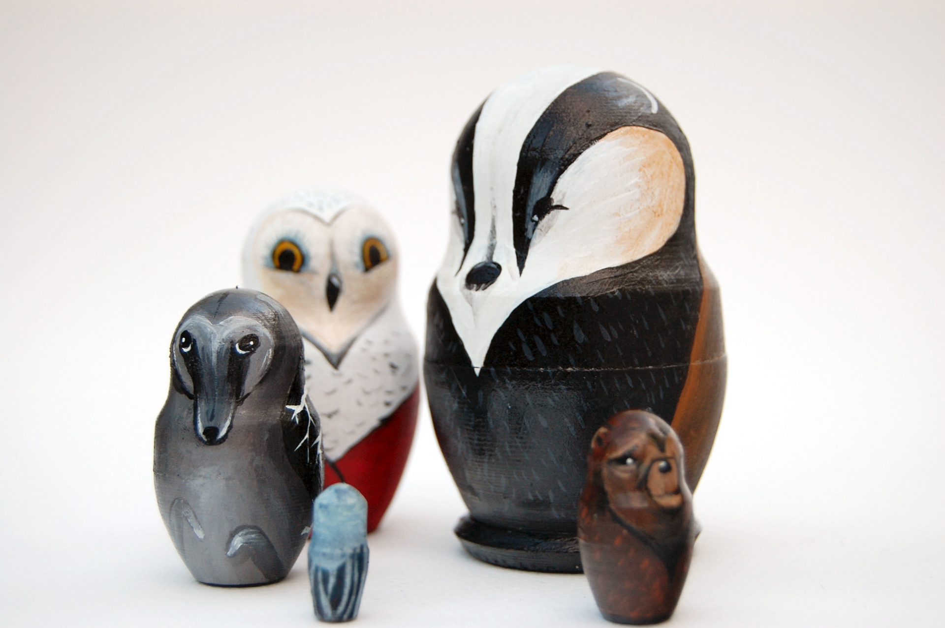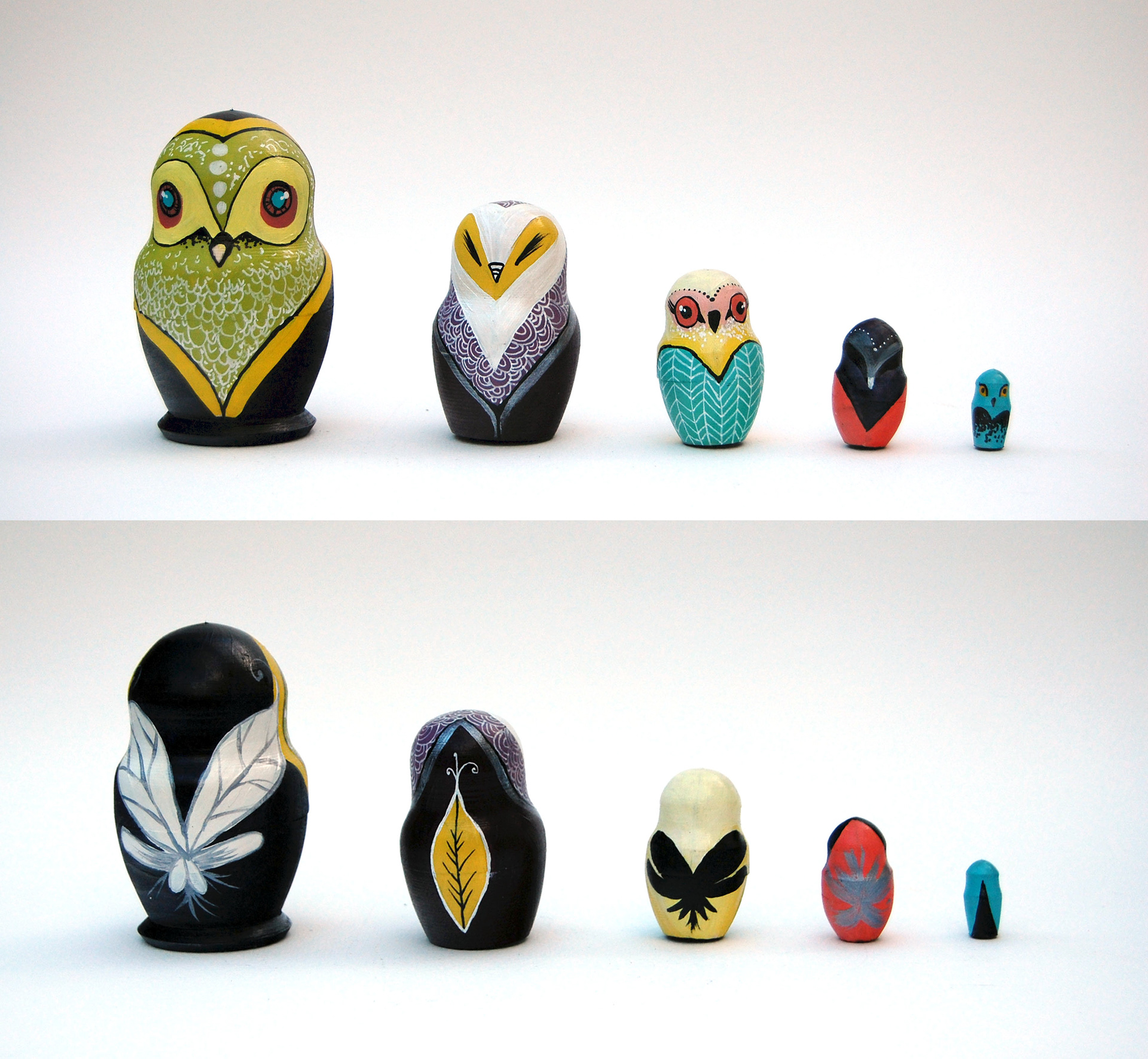 Commissioned Russian Owl Sets. All personalised with specific details (colours, features, or theme).