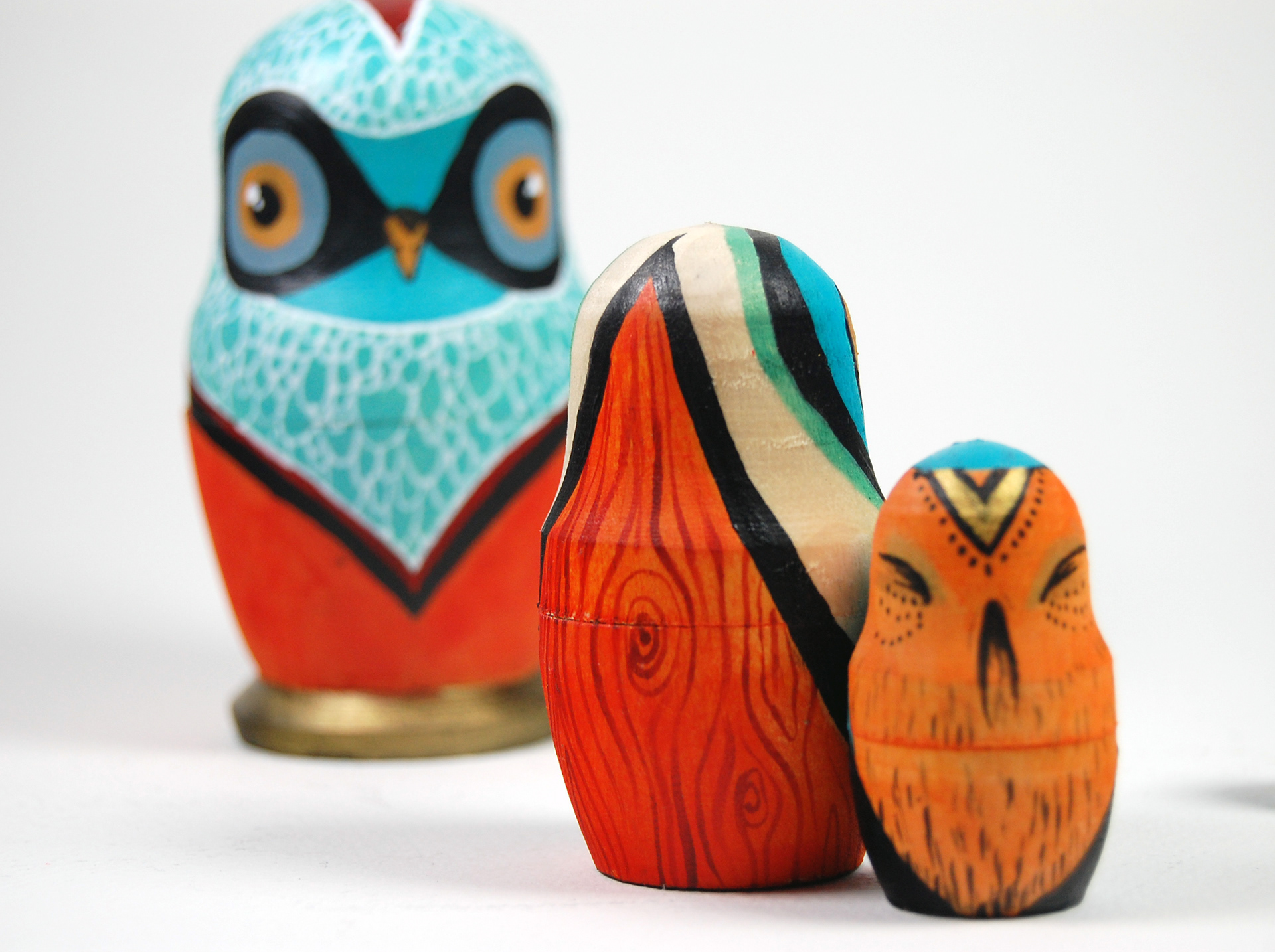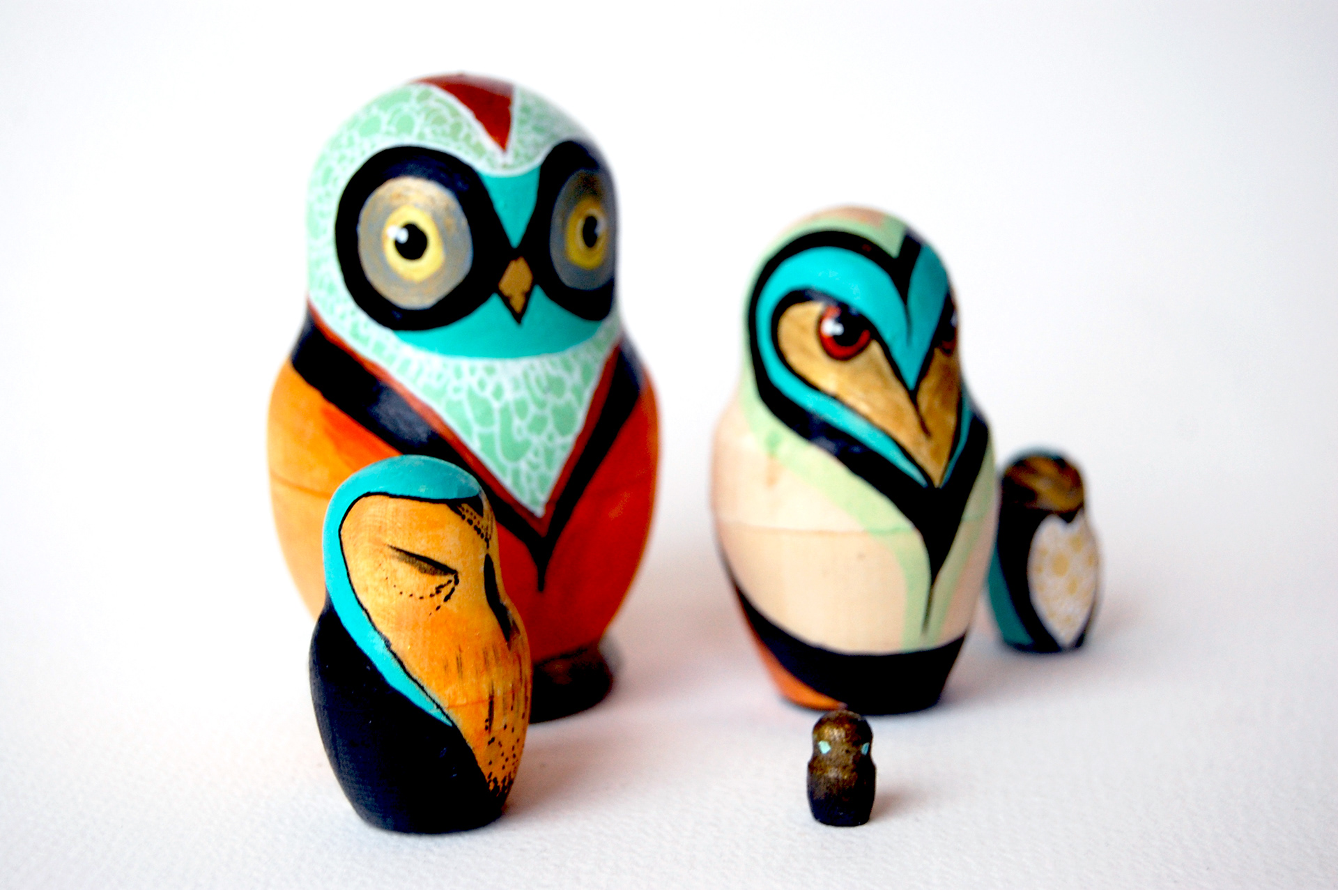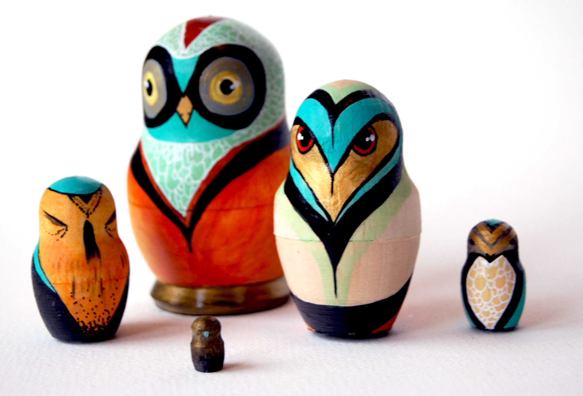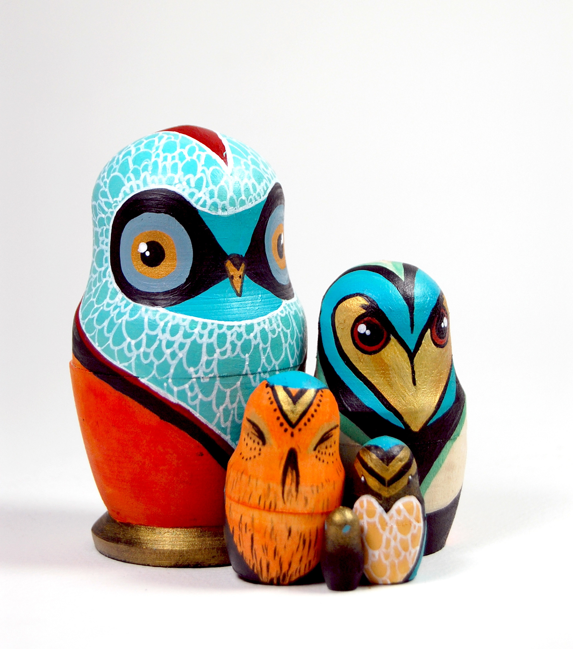 3 Versions of Russian Owls 'Tangerine Turqoise'
