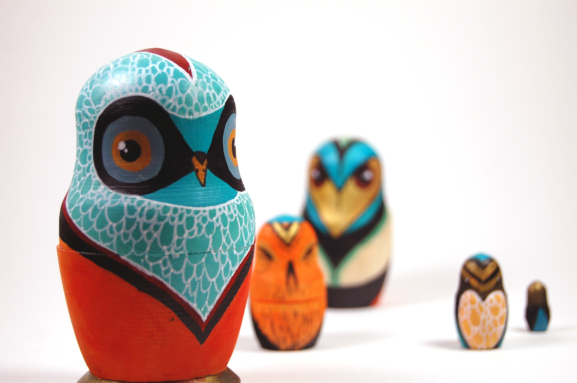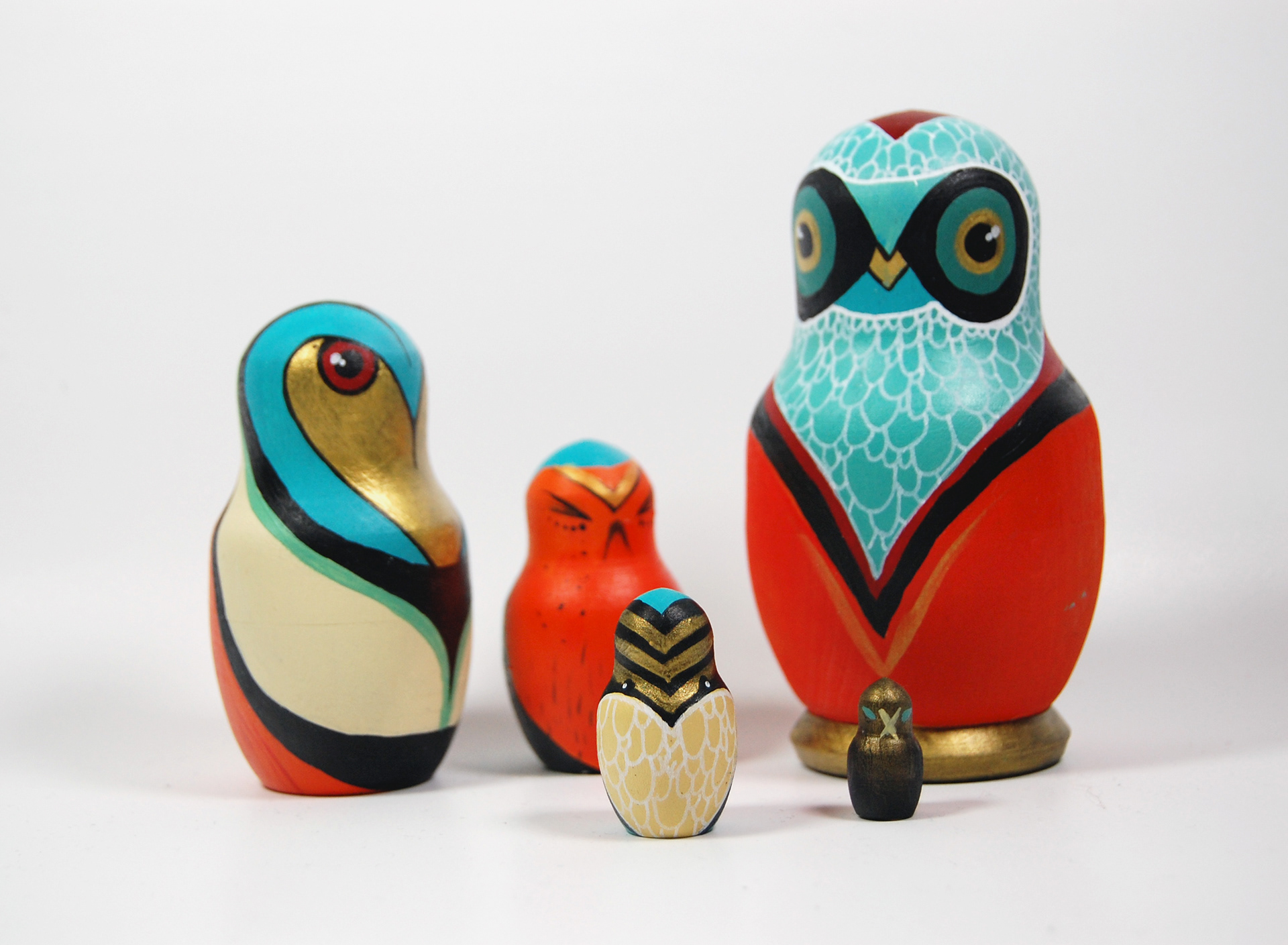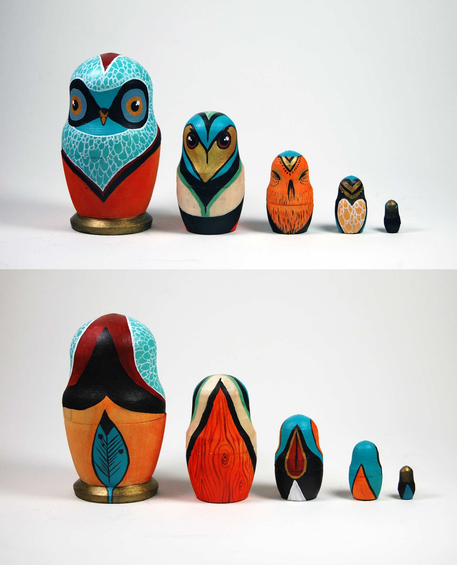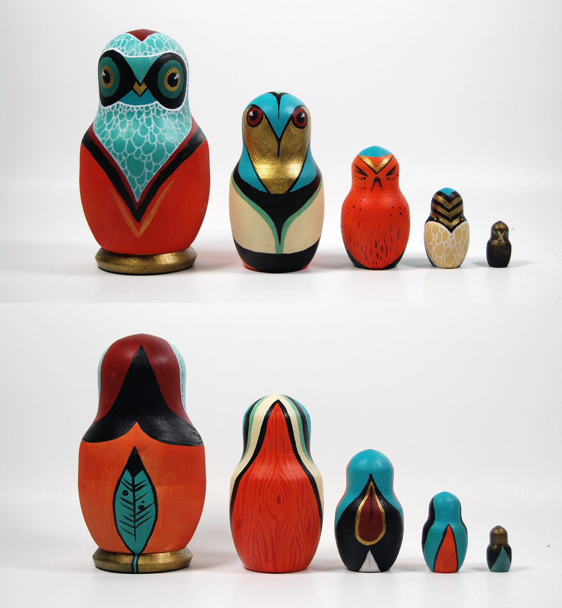 3 Versions of Russian Owls 'Tangerine Turqoise'