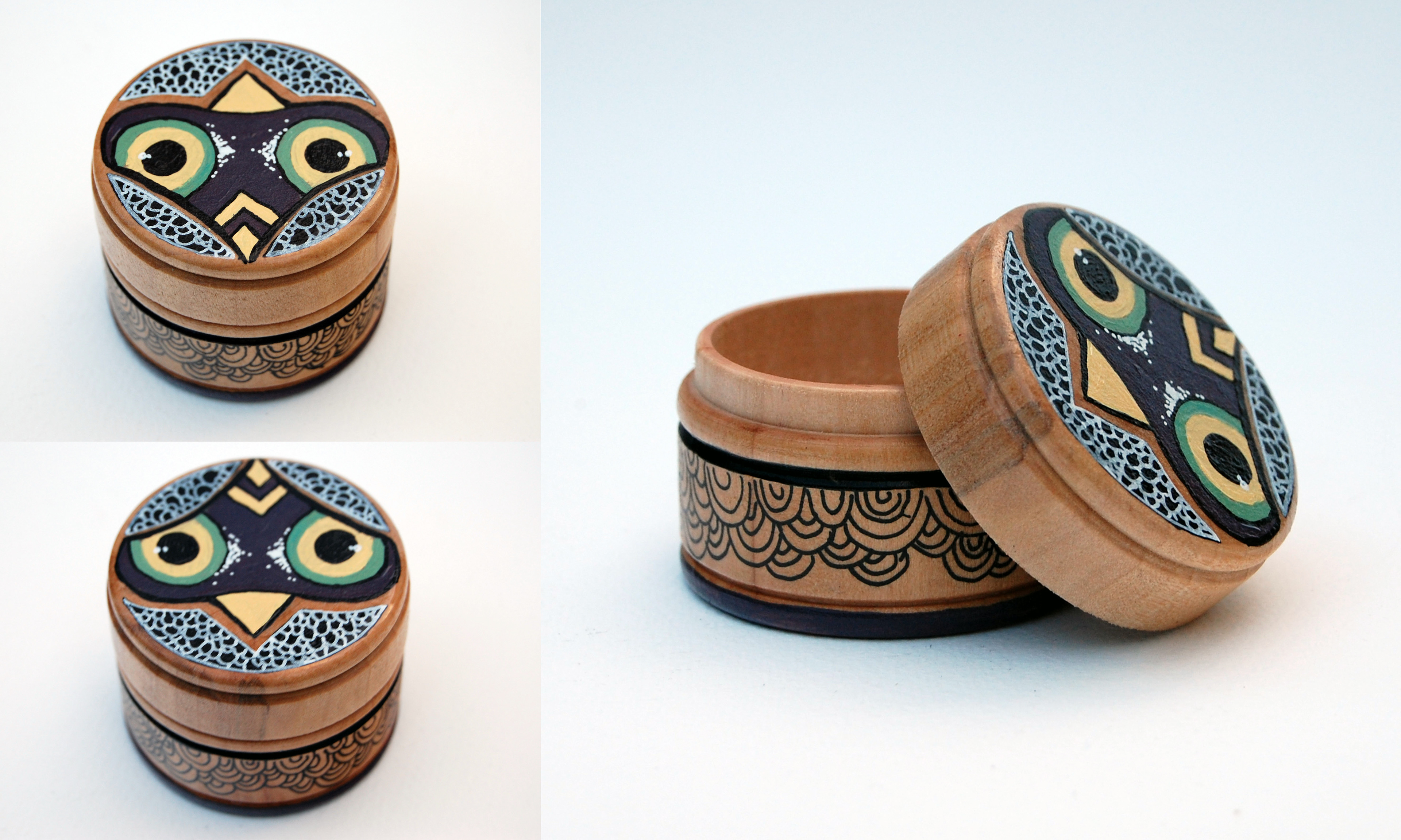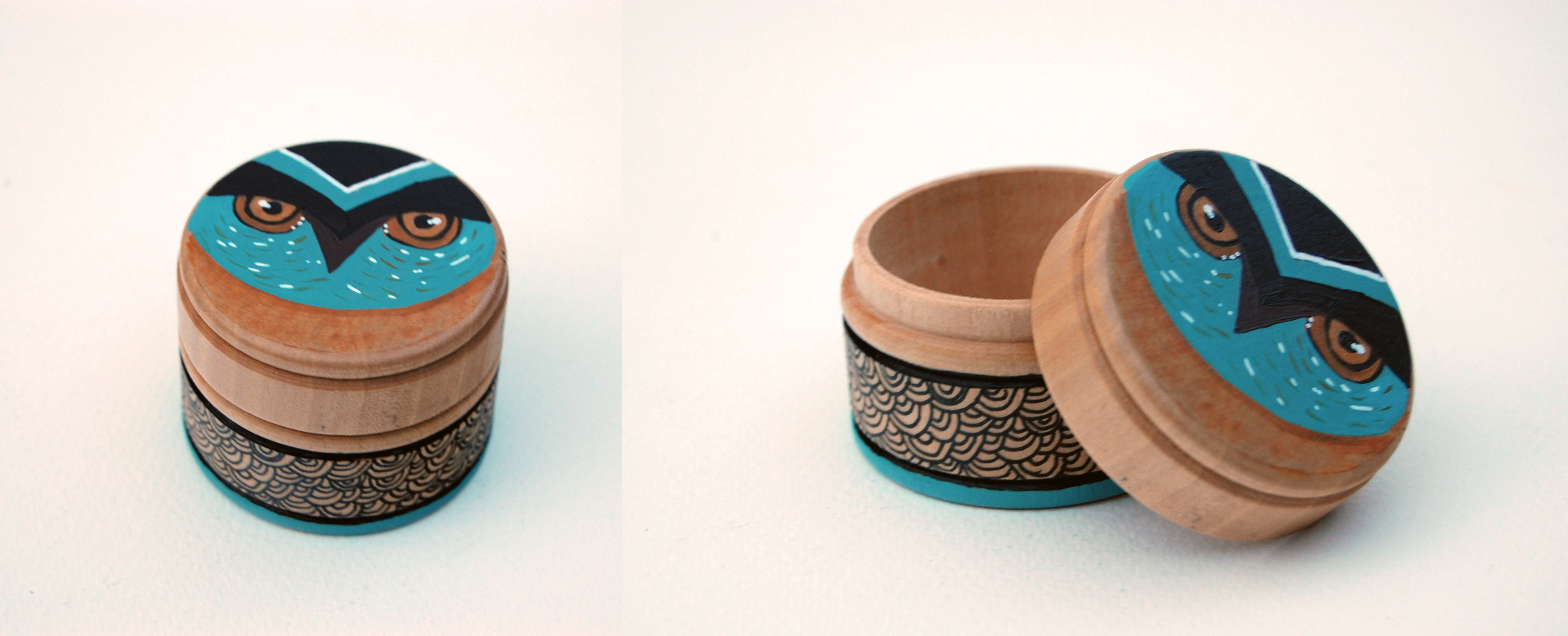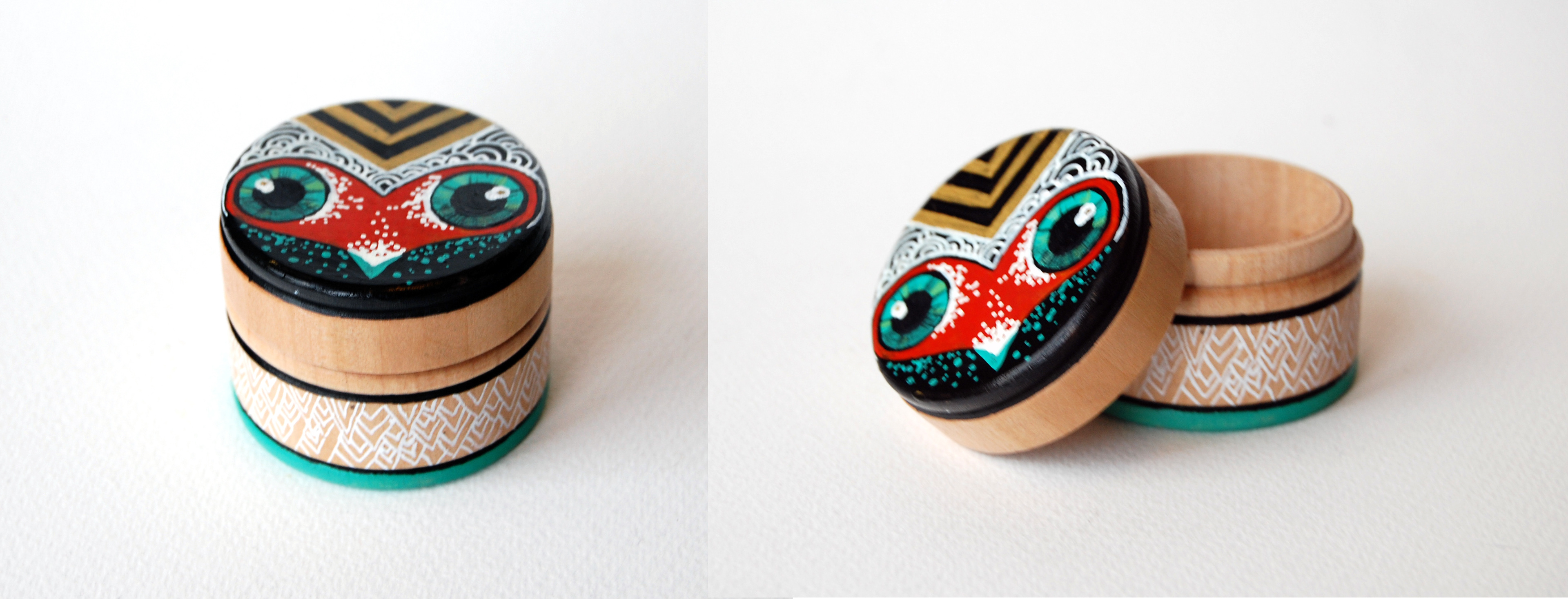 A selection of tiny painted wooden pots