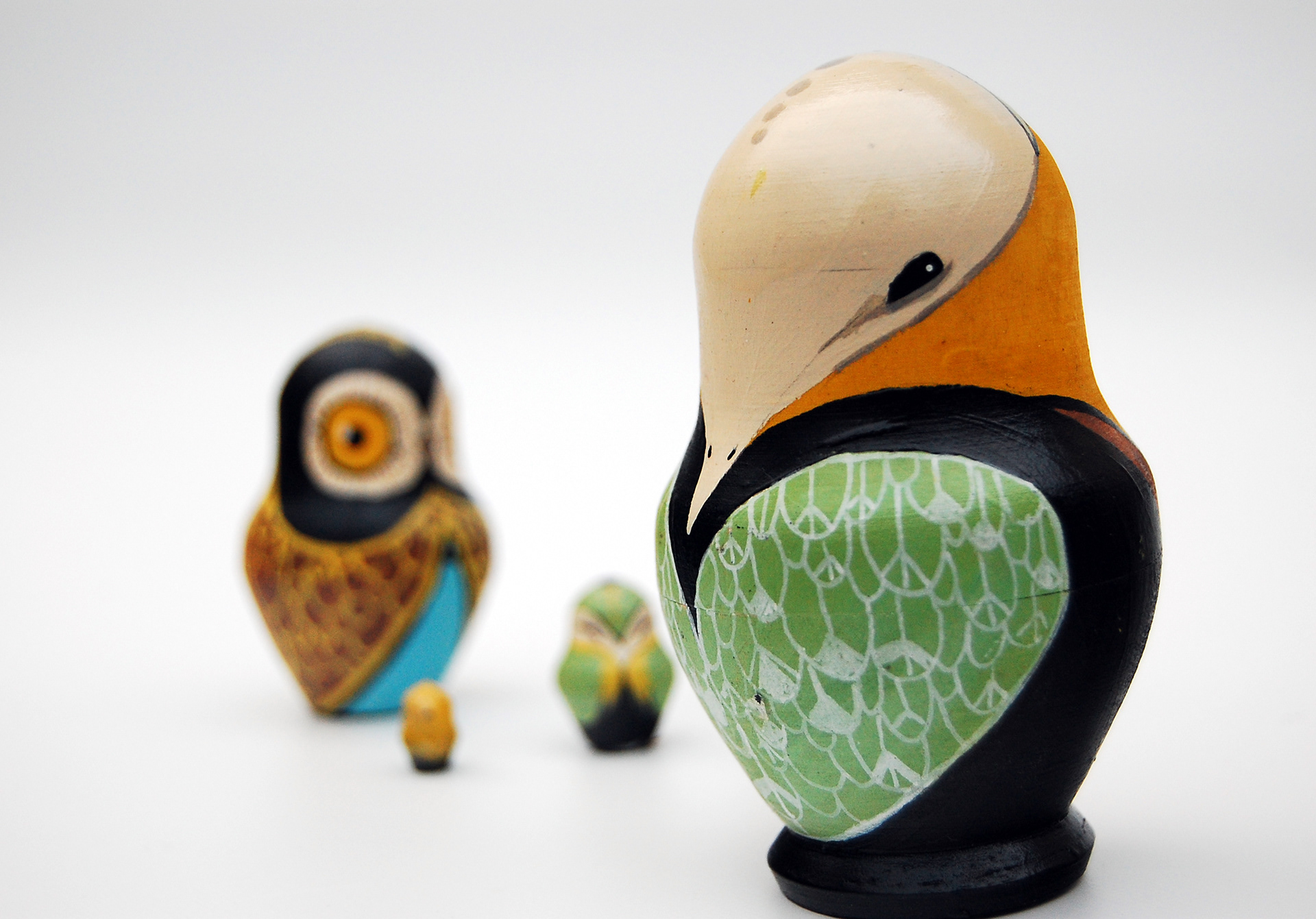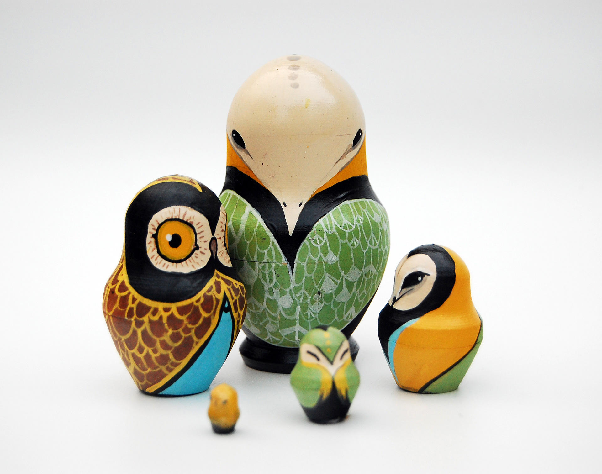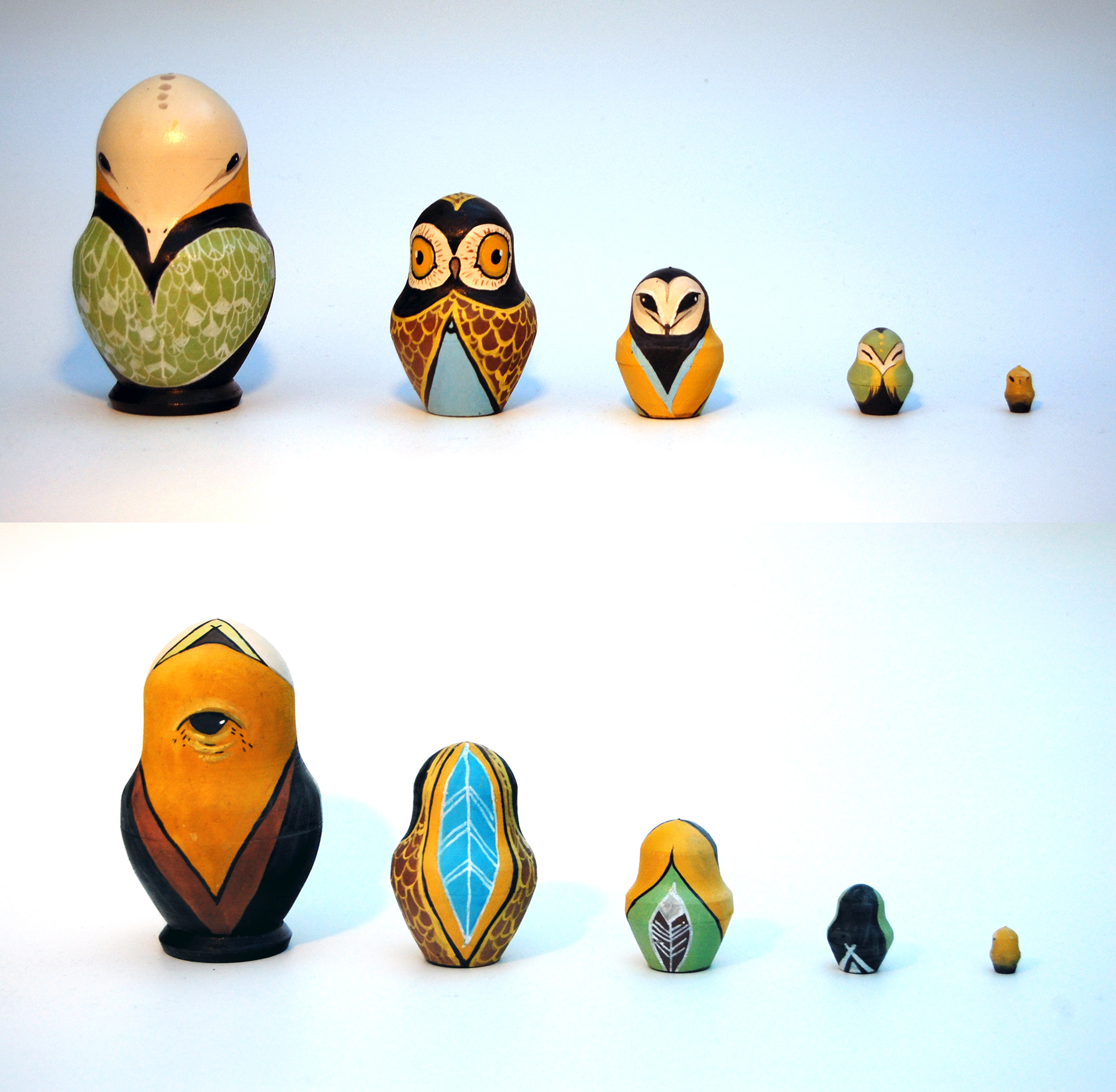 A person set of Russian Owls with a yellow colour palette.